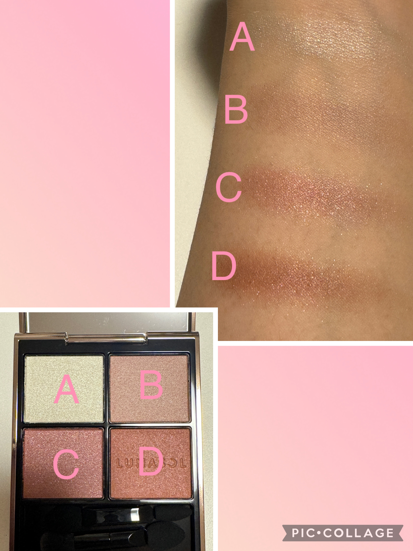 このパレットはマット、パール、ラメの3パターンの涙袋が作れます‼️ 真ん中の下には血色影カラーパウダーといって影寄りの色だけど血色感もあって目元が暗くならない魔法のようなカラーだそうです✨ アプリコットプランぷくはナチュラルな印象になるコーラルカラー サクラプランぷくはかわいい印象になるピンクカラー 私は血色影カラーパウダーをブラシで作ってからマットとパールを重ねてから黒目のところにラメをのせて使ってます😀 使い方も簡単なのとコロンとした見た目と小さめなのでポーチに入れてもかさばらず持ち運びにも向いてます✨