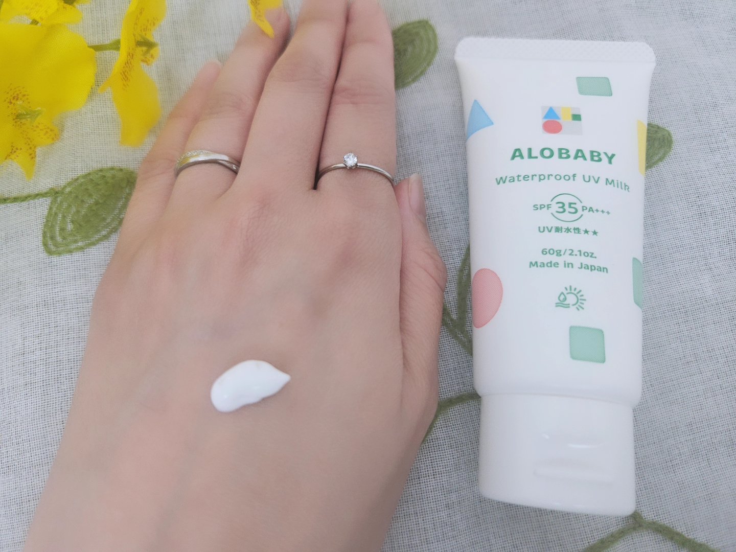 アロベビーのウォータープルーフUVミルク☀️SPF35PA+++でウォータープルーフ!汗をいっぱいかく子どもにウォータープルーフが嬉しい✨新生児から使える優しい使い心地🌻柔らかいクリームはスーッと伸びてササッと塗りやすい◎キシキシしないでしっ...