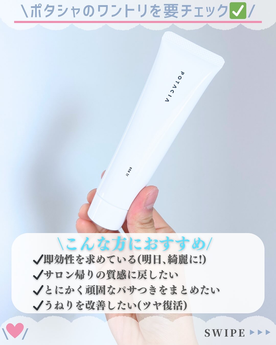 POTACIAポタシャ@potacia_official様よりご提供頂きました♪美容室で施術するシステムトリートメントがチューブ1本に💕ダメージ、パサつき、乾燥によるうねりを緊急レスキュー❗️ヘアスタイルをどうしても決めたい!!特別な日の前夜...