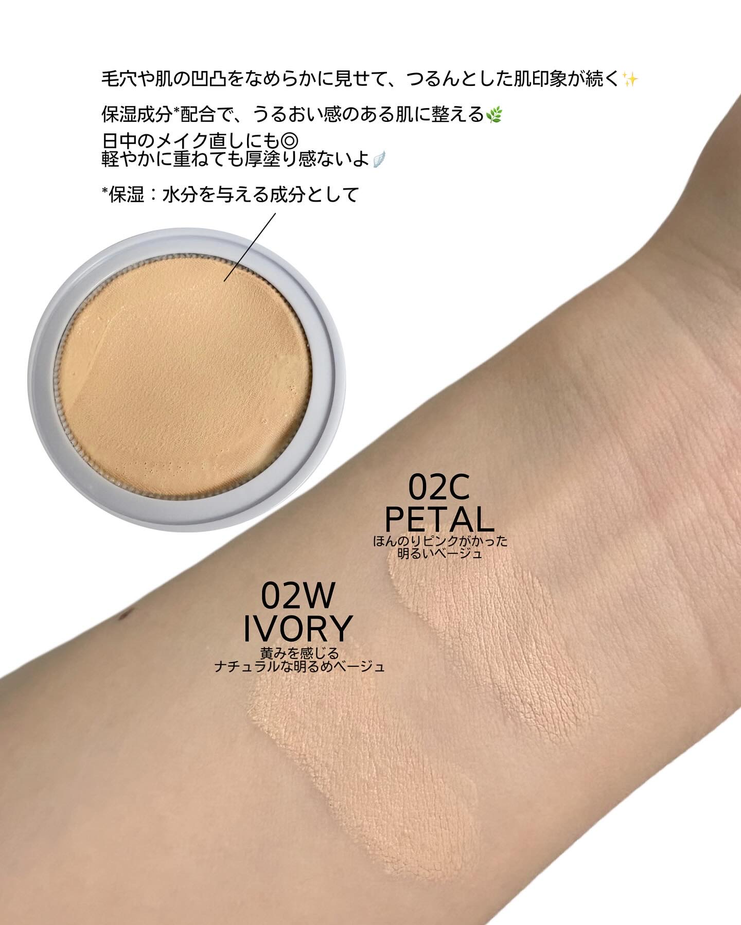 - 素肌のように軽やかな使用感でありながら、毛穴・色ムラ・くすみをしっかりカバーし、自然なツヤとセミマットな仕上がりを両立。 メッシュ構造のクッションがファンデーションを均一に含み、ムラを防いで密着。ヒアルロン酸などの保湿成分配合で肌のうるおいを守り、長時間化粧崩れしにくく、美しい肌をキープします。肌トーンに合わせやすいカラー展開で、デイリーメイクにぴったり。