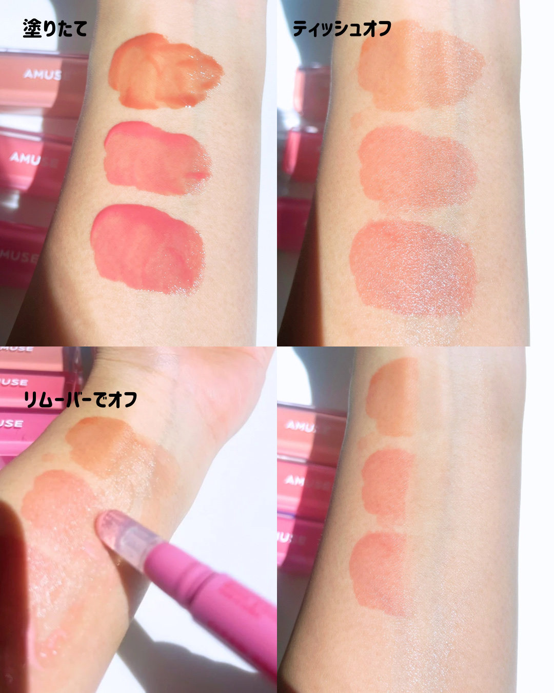お花のパケが可愛すぎる🌼飲み会リップでもおすすめなティント♡AMUSEのデューティント3色とティントワンタッチリムーバーをスウォッチ♡😆AMUSEアミューズデューティント日本限定東京モモ/03ヘルシーモモ/08パープルクォーツティントワンタッ...