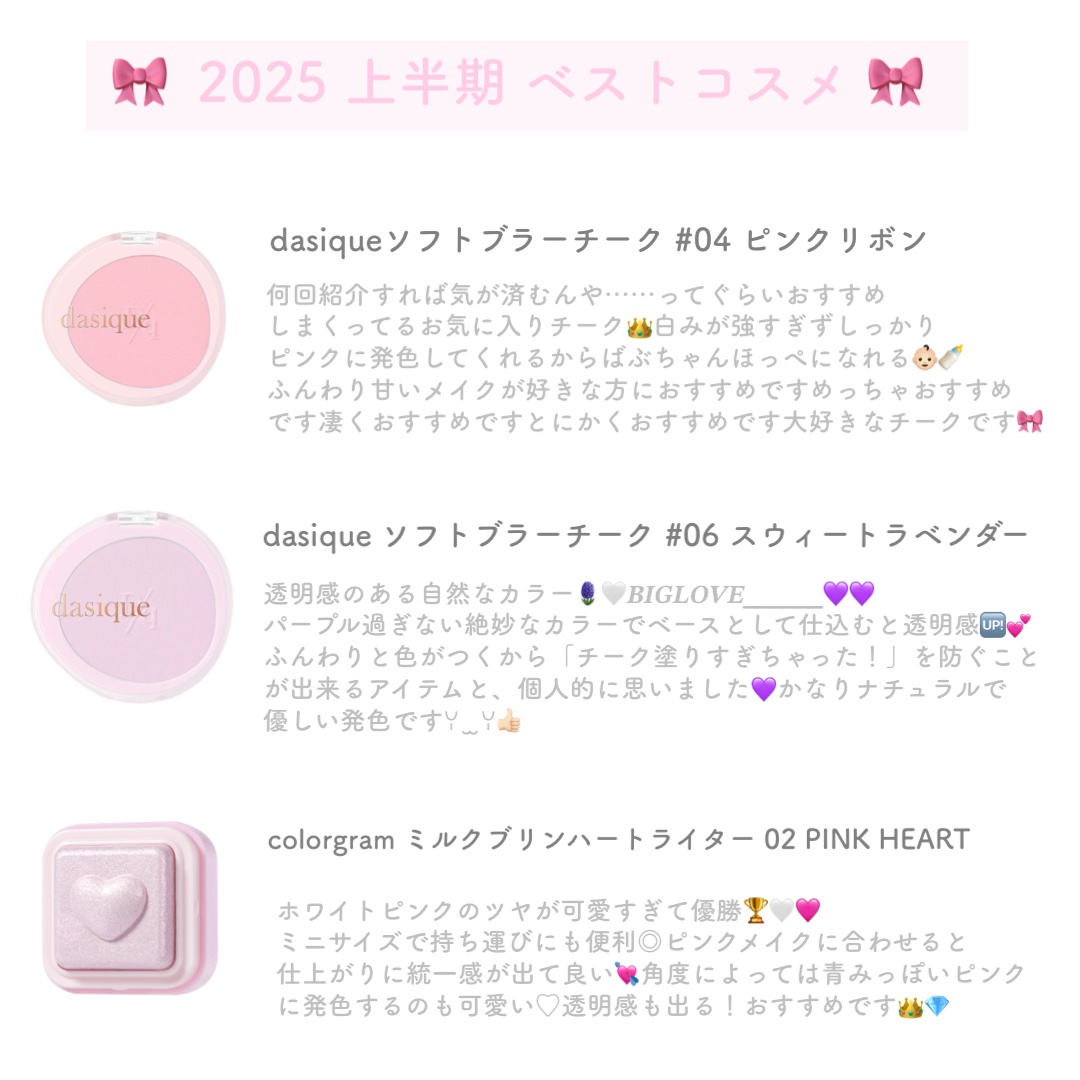 あまりにも可愛すぎてずっと見てられる パッケージ😭🎀 ラメ感が強めで頬がキラキラになります デイリー使いだとマットチークと組み合わせてラメ感を少し抑えるのが個人的にはおすすめです💘 なによりパッケージが超絶可愛いから持ってるだけでテンションが上がる⤴️⤴️⤴️