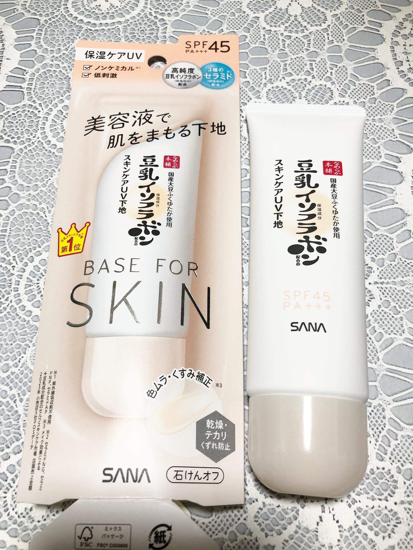 - 美容液で肌をまもる下地 豆乳スキンケア市場*1第1位 色ムラ・くすみ補正*2 乾燥・テカリくずれ防止 保湿ケア □ノンケミカル*3 □低刺激 石けんオフ 豆乳の保湿美容液下地 美容液生まれのUV下地で日中もお肌を守りながらうるおい満ちたお肌へ。 ○キメを整えてお肌を守るオリジナル成分 高純度豆乳イソフラボン ふくゆたか使用豆乳発酵液(すべて保湿成分) ○乾燥からバリア 3種の*4セラミド グリチルリチン酸2K*5 エクトイン*5 ビタミンE*6 長時間べたつかず、乾燥・皮脂くずれをW防止 8時間化粧持ちデータ取得済み*7 高密着パウダー*8 皮脂吸着パウダー*9 うるおい持続成分*10 美容液成分*11 87% オールインワン 洗顔後これ1つでOK! SPF45 PA+++ ブルーライトカット成分*12in *1 豆乳成分配合のセルフスキンケア市場 店頭売上金額2023年小売店5社POSデータ *2 メイク効果による *3 紫外線吸収剤不使用 *4 セラミドNG、セラミドNP、セラミドAP(すべて保湿) *5 保湿 *6 トコフェロール(製品の抗酸化成分) *7 当社調べ 仕上がりには個人差があります。(ツヤ・透明感・毛穴目立ちのなさ・薄れのなさ) *8 オキシ塩化ビスマス *9 シリカ *10 (エイコサン二酸/テトラデカン二酸)ポリグリセリル-10(保湿) *11 保湿成分(油性・水性)、水 *12 酸化チタン ●パッチテスト済み ●アレルギーテスト済み ●ノンコメドジェニックテスト済み (すべての方に皮フ刺激やアレルギーが起きない、また、ニキビのもとができないわけではありません。)