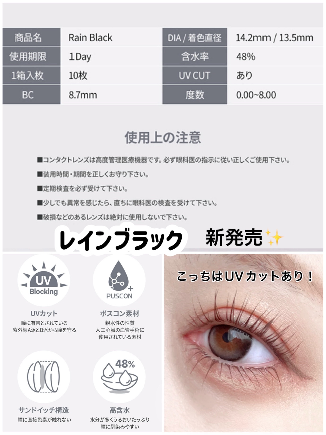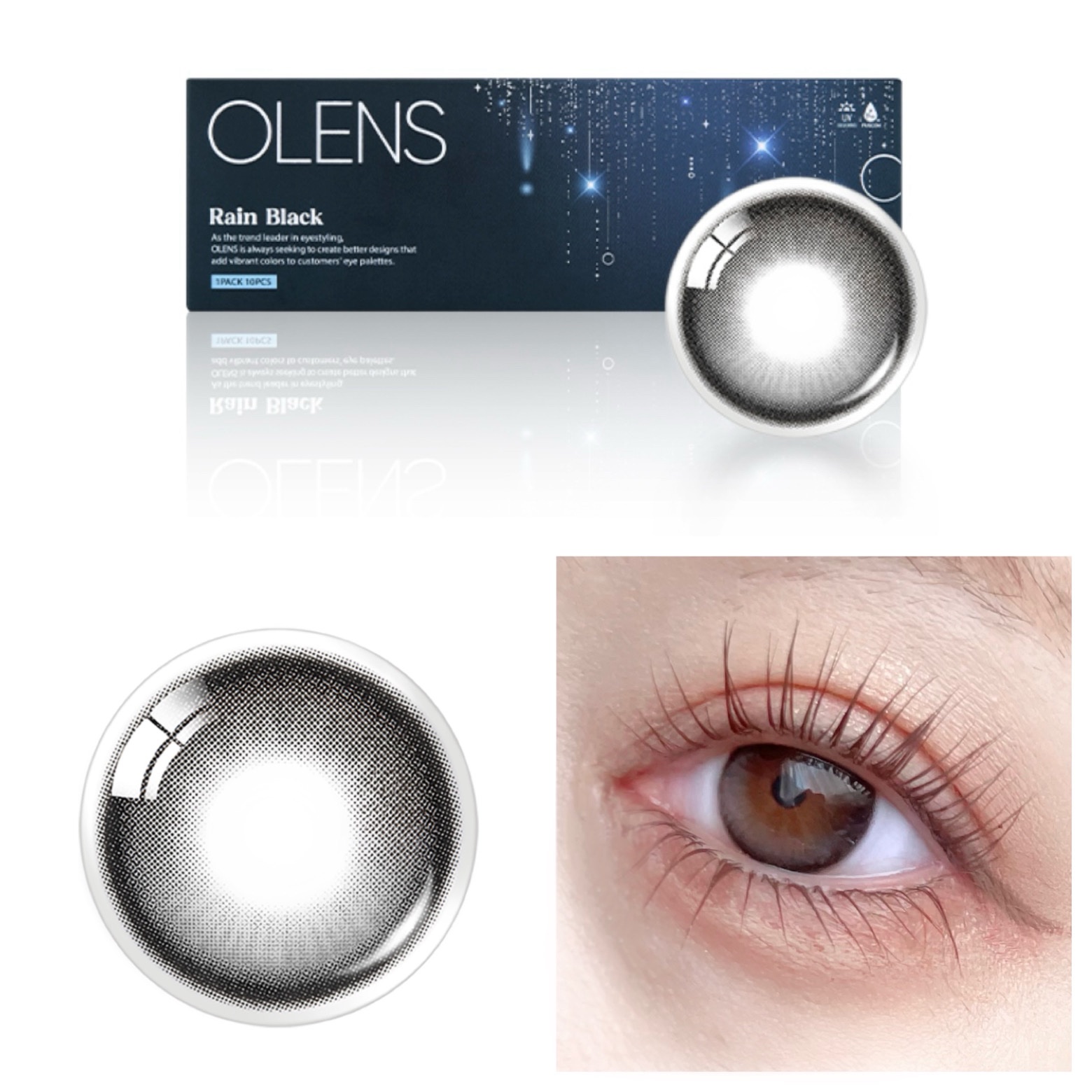 𓊆ㅤOLENS黒目カラコン𓊇透明感抜群で、ラメメイクにも低彩度メイクにも合います🫧どちらも洗練された綺麗で美しく惹き込まれる瞳になれます🪄OLENS ▶▶▶▷ RainBlack1DAY ¥1,7601Day(1箱10枚入り)DIA14.2m...