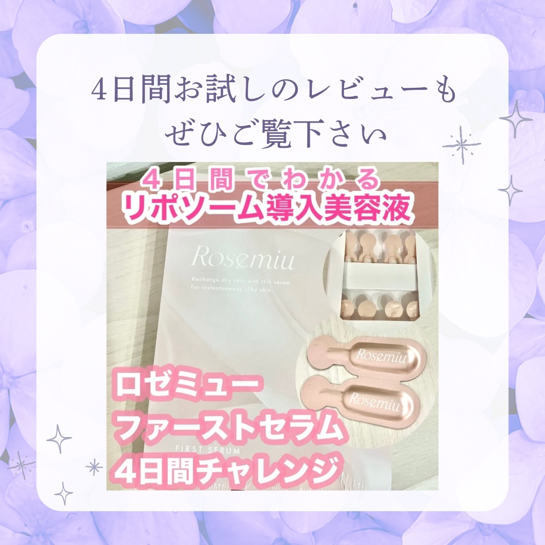 Rosemiuロゼミューファーストセラムリポソーム導入美容液💗うるおいを長時間保ってくれ、肌キメを整え浸透をサポートしくれるみたい✨インナードライ・ごわつき・ハリツヤがない方にお勧めです💗化粧水を使う前に使用することで化粧水の浸透を良くしてく...