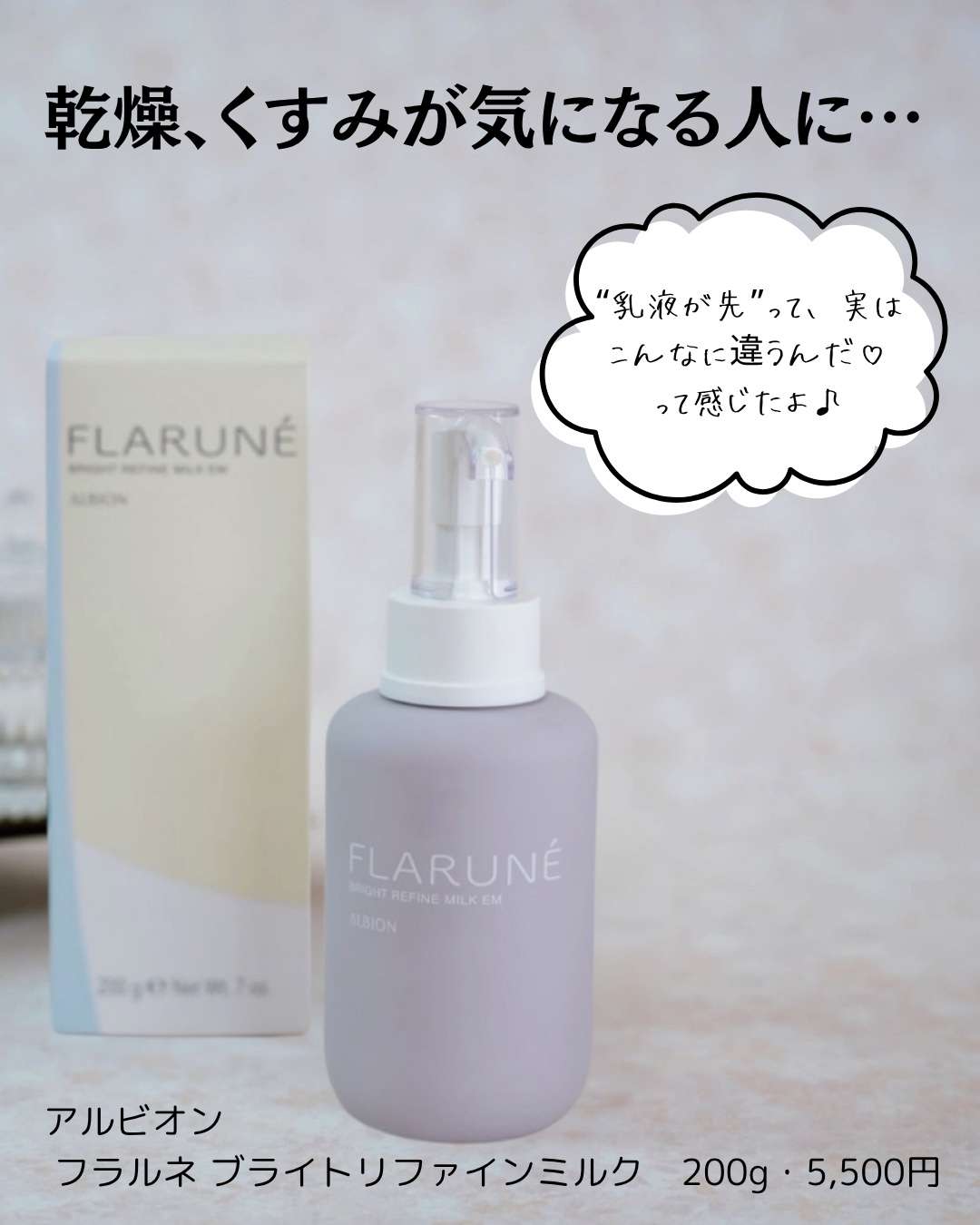 合言葉は〜?"洗顔後"すぐ!先行乳液でふっくらやわ肌♡◻️ALBIONフラルネブライトリファインミルクEM¥5,500(税込)アルビオンさまからいただきました!ALBIONといえば先行乳液!フラルネからも先行乳液が出てるよ!ブライトリファイン...