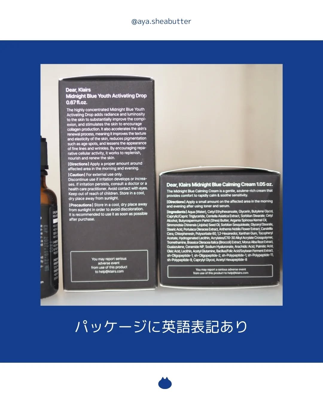 🤍PRklairs(クレアス)日焼けや敏感に傾いた肌のための、#ミッドナイトブルーシリーズをお試ししました特徴は、着色料不使用で自然由来のカモミールオイルから抽出されたグアイアズレンが豊富に含まれている美しいブルーのテクスチャー🩵【#ミッドナ...