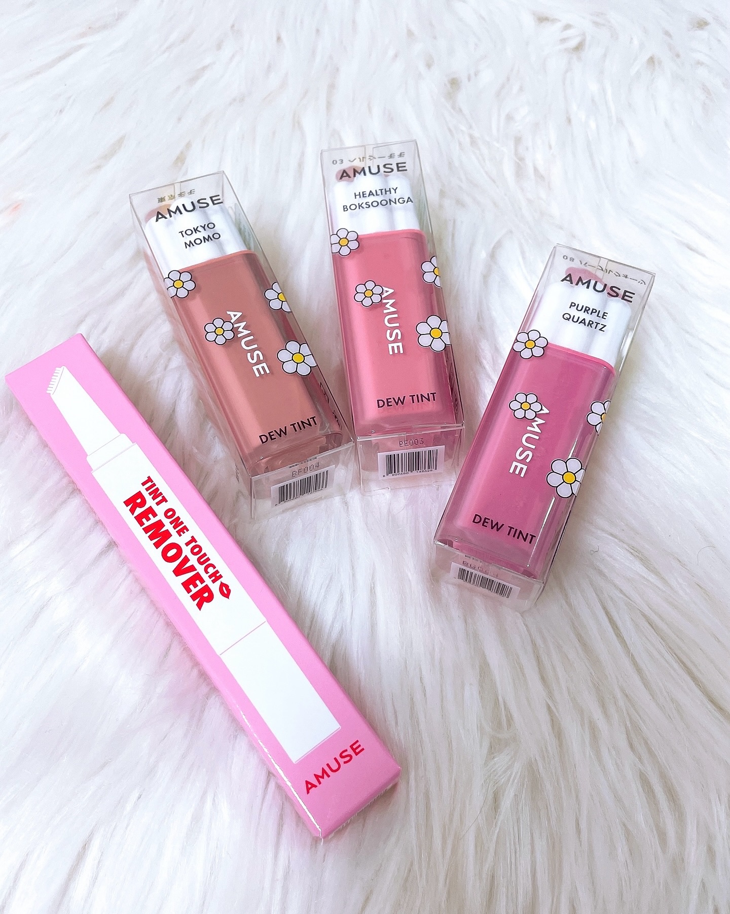 お花のパケが可愛すぎる🌼飲み会リップでもおすすめなティント♡AMUSEのデューティント3色とティントワンタッチリムーバーをスウォッチ♡😆AMUSEアミューズデューティント日本限定東京モモ/03ヘルシーモモ/08パープルクォーツティントワンタッ...