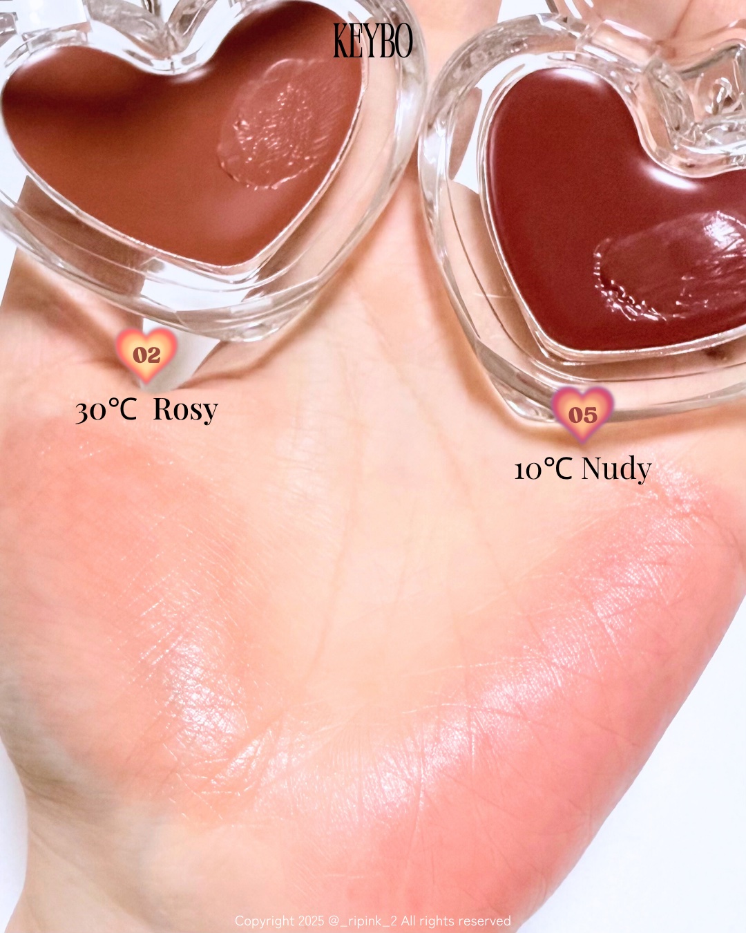 韓国コスメkeybo新作のハートキーリングコスメ❤︎塗るだけでツヤぷる感が出るもっちりとしたテクスチャーチークとして使う時はハイライトがいらないくらいのツヤ感!温度で選ぶカラーセレクション🌡️今回使用した2色をミックスして使うのも可...