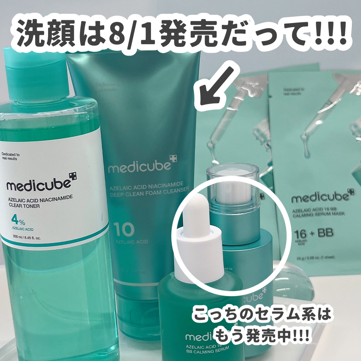 medicubeアゼライン酸16BBカーミングセラム皮脂•乾燥によるくすみケアに。みずみずしい軽やかなテクスチャーで、ベタつかずさらっとした使用感。アゼライン酸*が16%配合されているそうで皮脂の気になりやすい鼻周りなどに部分使いがぴったり💫...