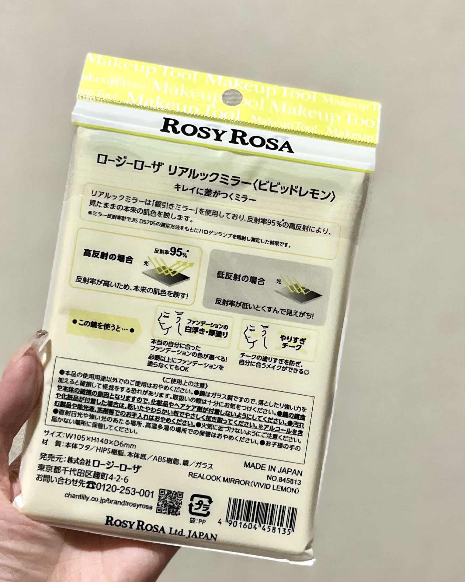 - リアルックミラーは【銀引きミラー】を使用しており、反射率95%(ミラー反射率計でJIS D5705の測定方法をもとにハロゲンランプを照射し測定した結果)の高反射により、見たままの本来の肌色を映します。 <ミニ> 手軽に使えるミニサイズなので、小さなバッグやポーチに入れて持ち運び可能です。