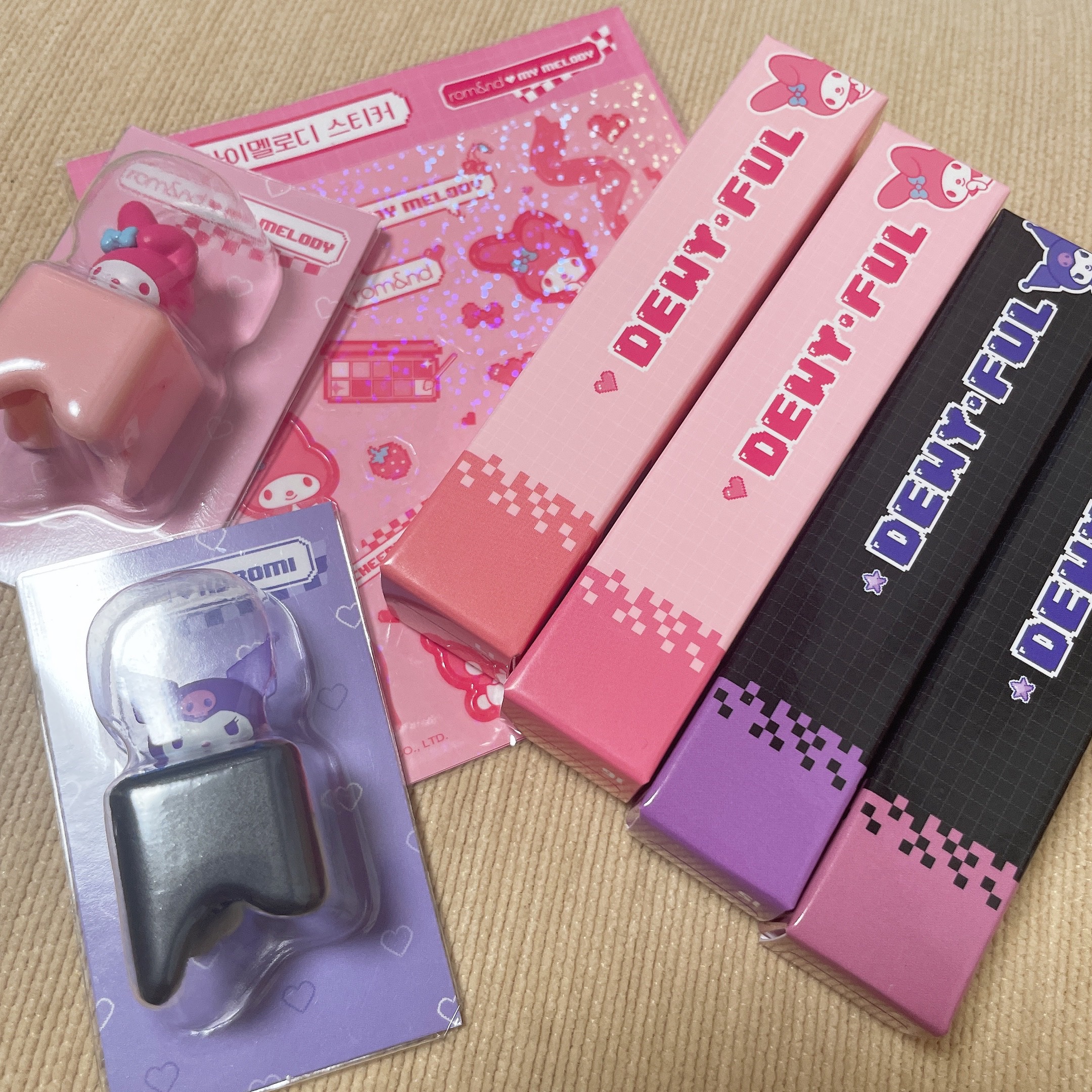 ⋱rom&nd×クロミちゃん色が絶妙すぎる…🩷ྀི⋰♡••••♡••••♡••••♡❥rom&ndサンリオコラボデュイフルウォーターティント13カスタードモ-ブ15チキタロ各:1320円(税込)♡••••♡••••♡••••♡2023年にクロ...