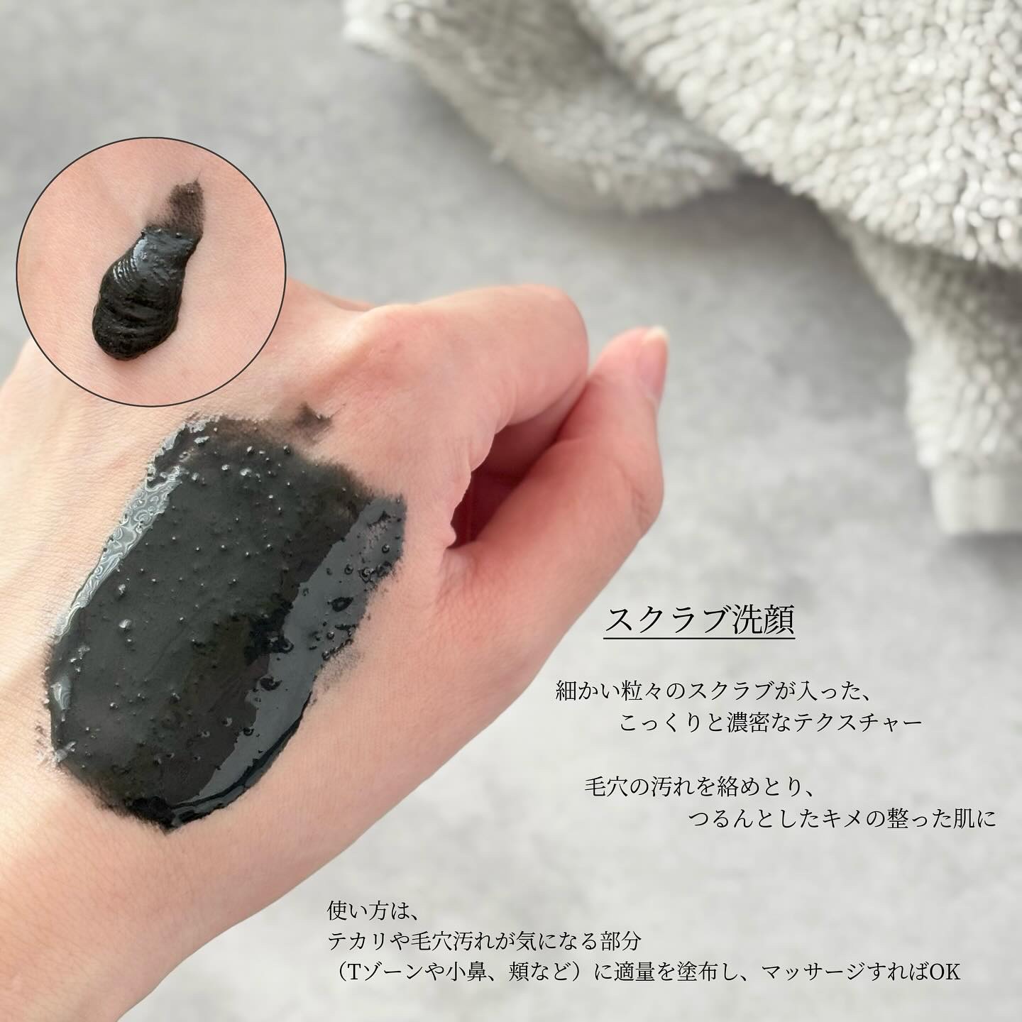 とろっ!むにっ!(この例えが合っているのか怪しいですが、こんな感じです!笑)とした不思議なテクスチャー👀 じゃりザラといった感じ! 大きめの粒がたくさん入っているので、伸ばす時は、肌を傷つけないように やさし〜く伸ばしています😌 じゃりじゃりザラザラとした感じのスクラブですが 体温や水蒸気、水分などによってシュガーが溶け、 なめらかなオイル状に変化!!! FLEUR SOAP(フレールソープ)という 上品でやさしく華やかな感じの香りで 個人的に大好きです💓 他の香りも良い香りがしそうなので、 すっごく気になっています🫶