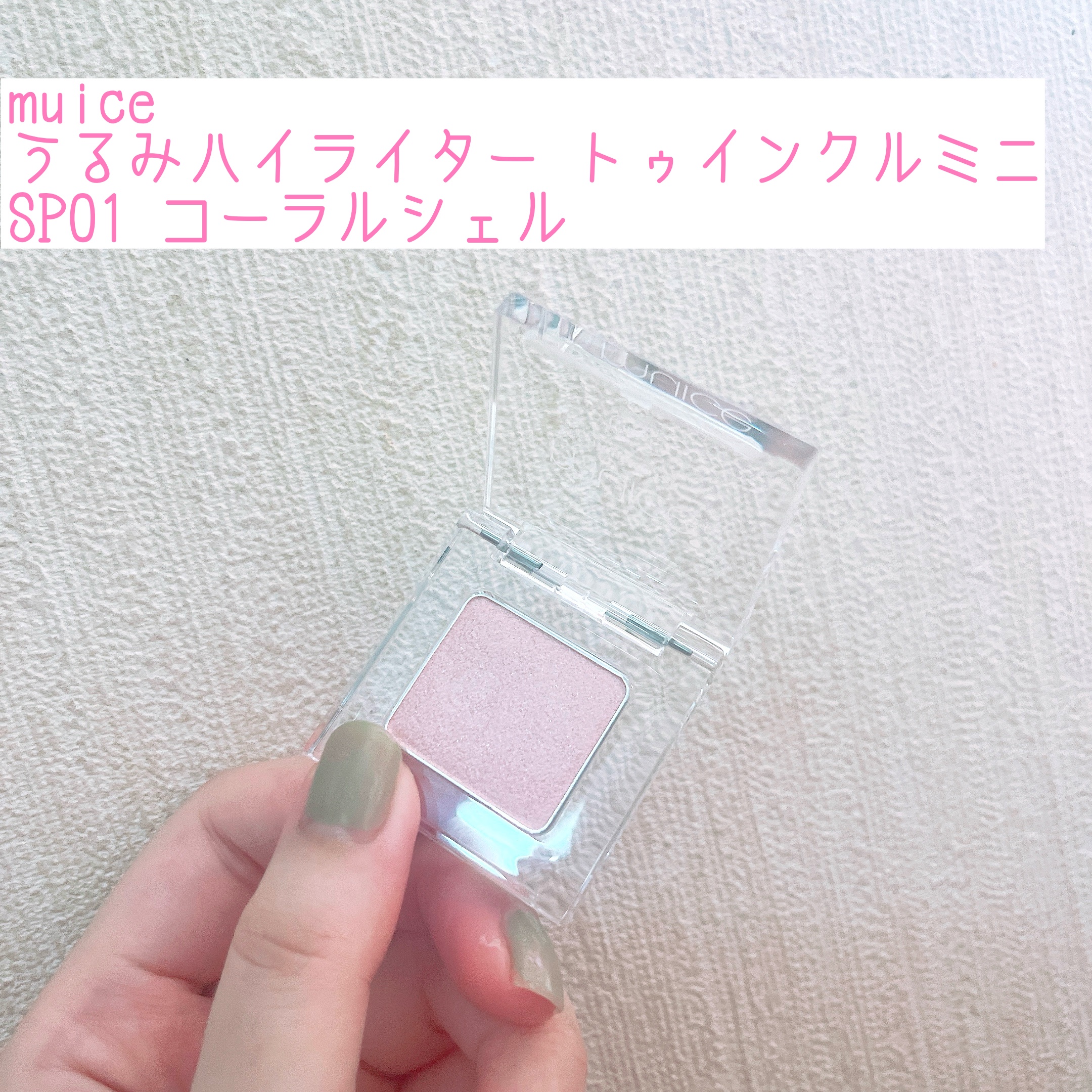 muiceうるみハイライタートゥインクルミニSP01コーラルシェルSP02ピュアラベンダー限定2色のミニサイズVerのうるみハイライターが誕生🌸SP01は肌馴染みのいいコーラルピンクで血色感とツヤ感をプラスSP02は透明感のあるピンクラベンダ...