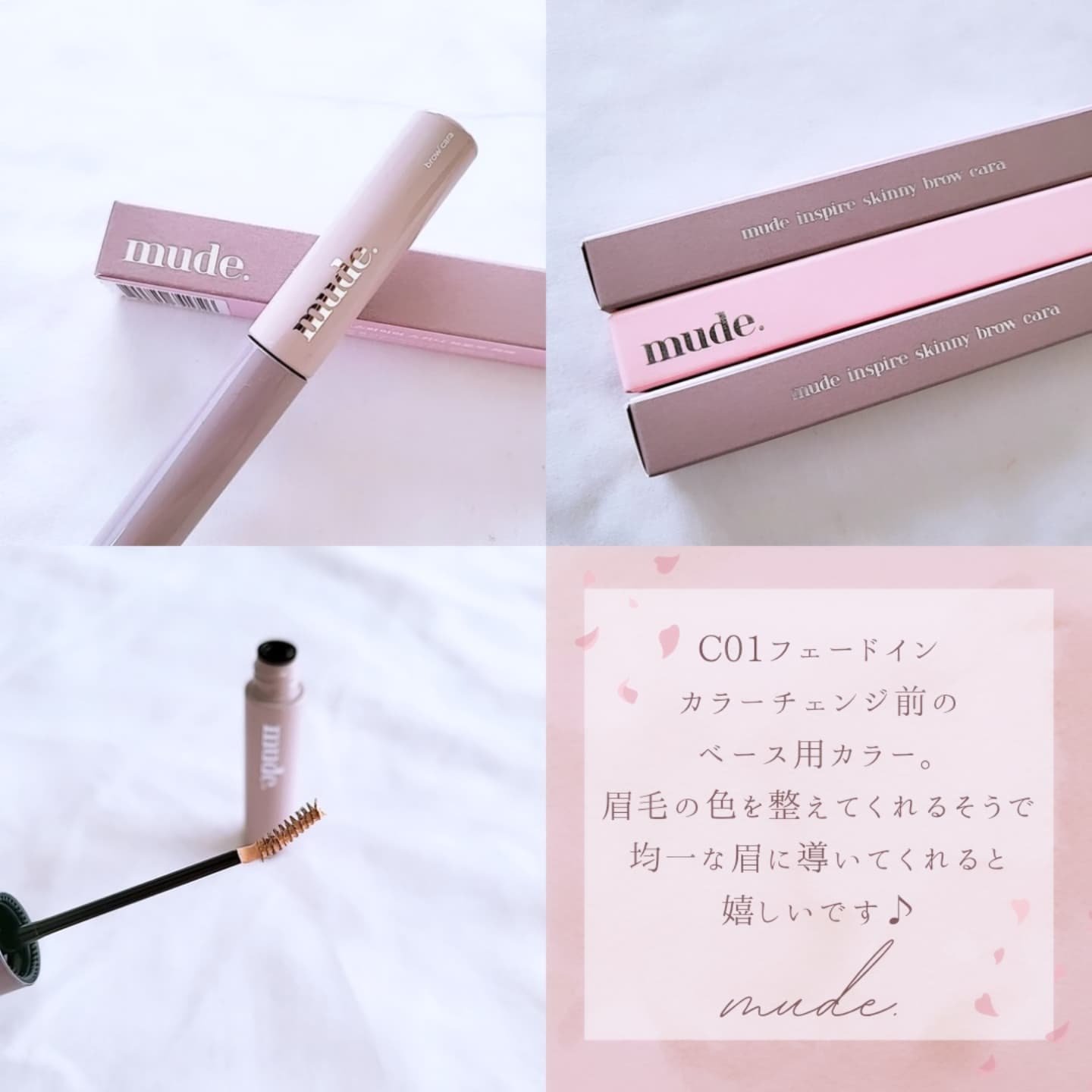 mude.インスパイアスキニーブロウカラは、眉頭から眉尻まで毛並みはそのまま1本1本を自然に整え、軽やか&ふんわりナチュラル眉に仕上げてくれるセットアップブロウカラ―🎀新色P01バニーが仲間入りして全10色展開♩ベース用カラーC01フェードイ...