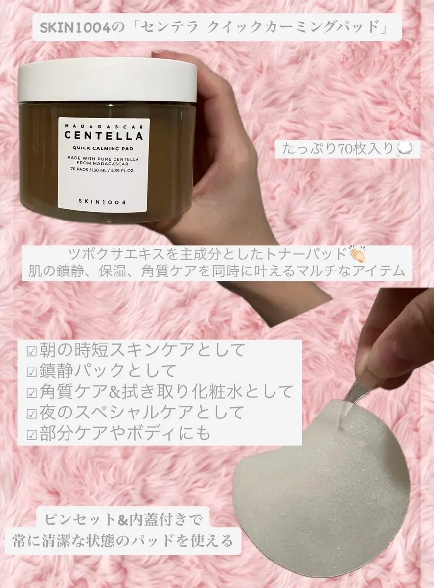 ✔朝のスキンケアに時間をかけられない✔肌の赤みが気になる✔さっぱりした使い心地のアイテムが欲しいって時にぴったりなアイテム💕🌿SKIN1004センテラクイックカーミングパッド🌿朝も手軽に使えるじゅわぴたパッドで、たった1分で水分チャージ✨この...
