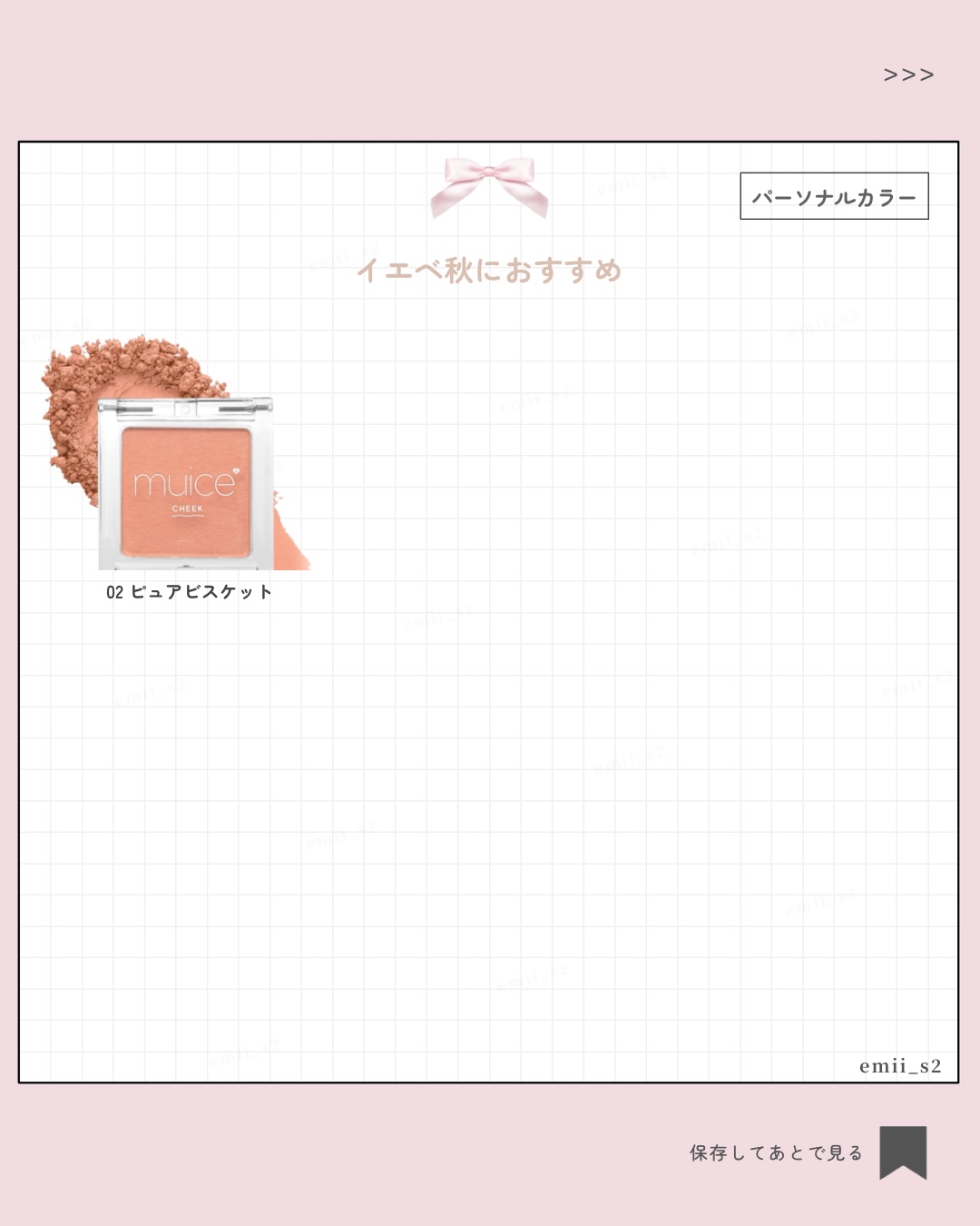 - ぽわんっと色付くなじみチーク <ポイント> ◆肌なじみの良いサラサラパウダー 一気に付きすぎることなくチーク初心者でも使いやすい! ◆程よいシアーな発色 単色使いはもちろん、レイヤリングしやすくグラデーションなどの調節も簡単。 ◆自然な血色感カラー ぽわん、と内側から上気したような自然な血色感を演出。 02 ピュアビスケット ビスケットのような柔らかいベージュカラー 03 ばぶみピンク ミルキーでやわらかなベビーピンク <04 ピュアミルティーピンク(旧:SP01 ピュアミルティーピンク)> 2025/9/19~定番化