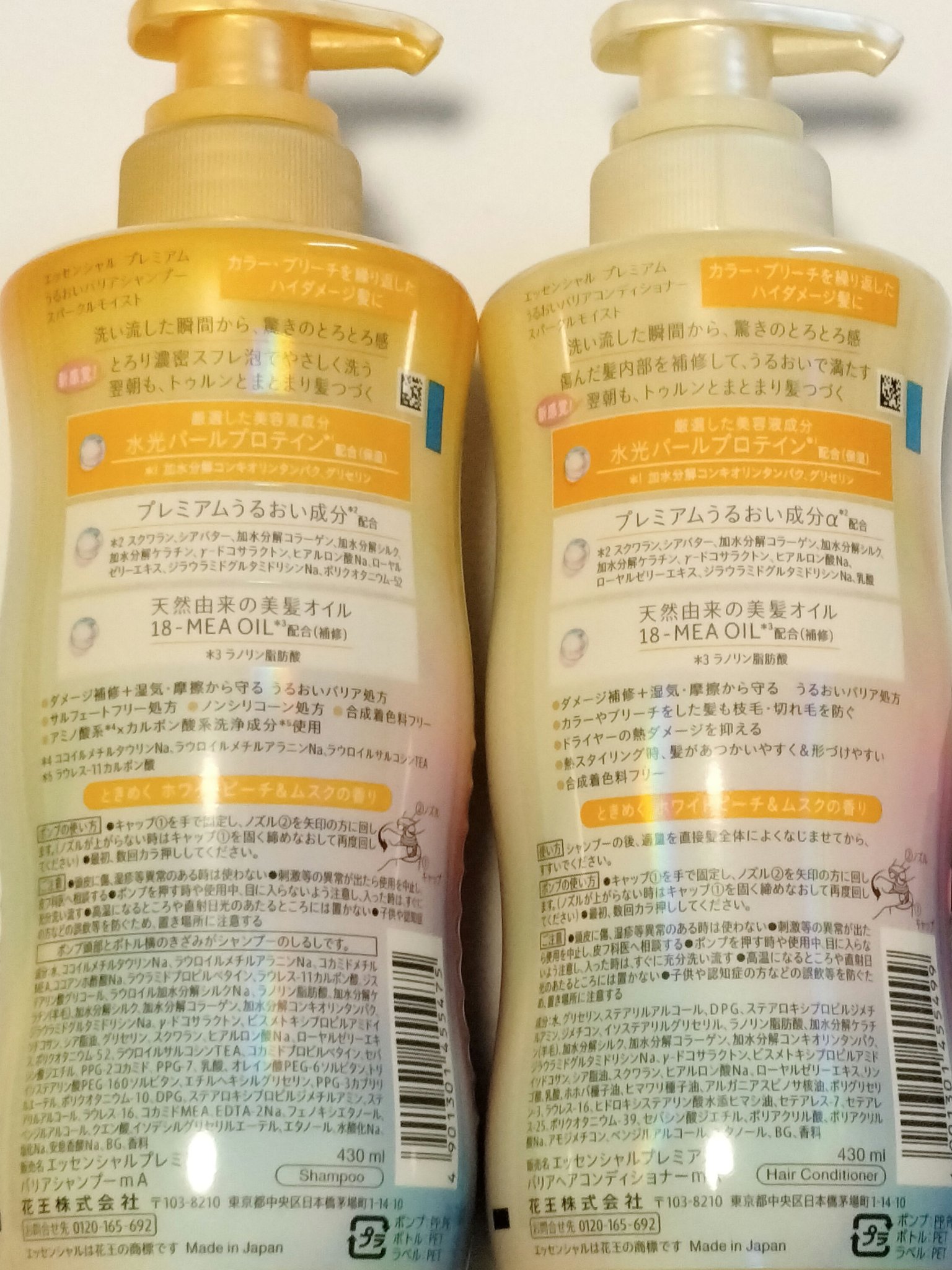 エッセンシャルから「エッセンシャルプレミアムバリアシャンプー・コンディショナースパークルモイスト」を頂きました!Point1♥ベスコス受賞*のエッセンシャルからハイダメージ向け商品が新登場!Point2♥新感覚!洗い流した瞬間から、驚きのとろ...