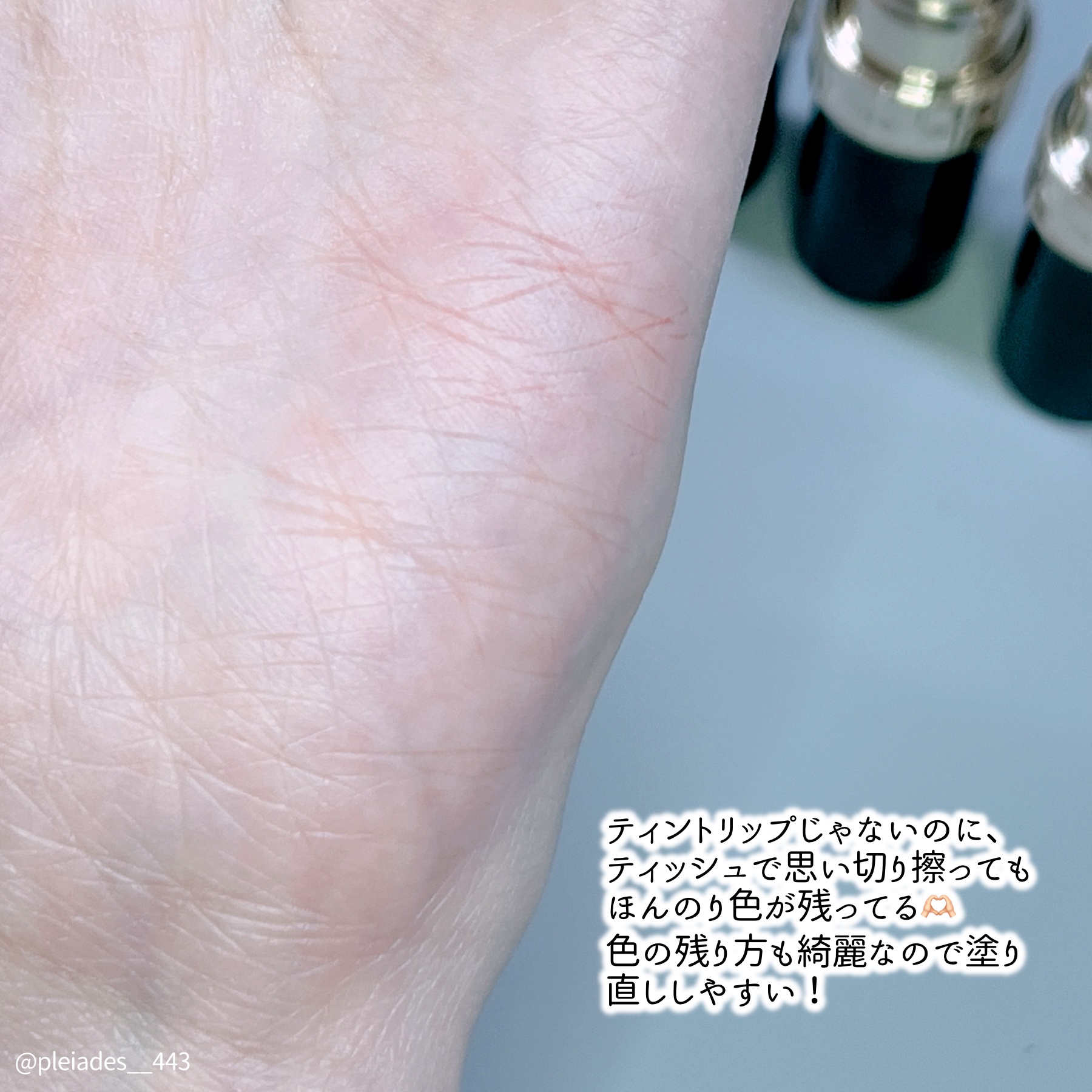 塗ってみたら素の唇とほぼ同じ色でこれぞ粘膜色って感じ! でもちゃんとメイクしてる感が出るので薄くはならずとても良い。 保湿感などの使い心地は本当に好きだし、小さいから持ち運びしやすくて良いんだけど………ここまで色が変わるとなると、ちょっと使うタイミング困る💦 こちら定番色の1~3は #ブルベ 向けっぽく書かれてるけど、これはブルベさんには厳しいだろうなと思います😢