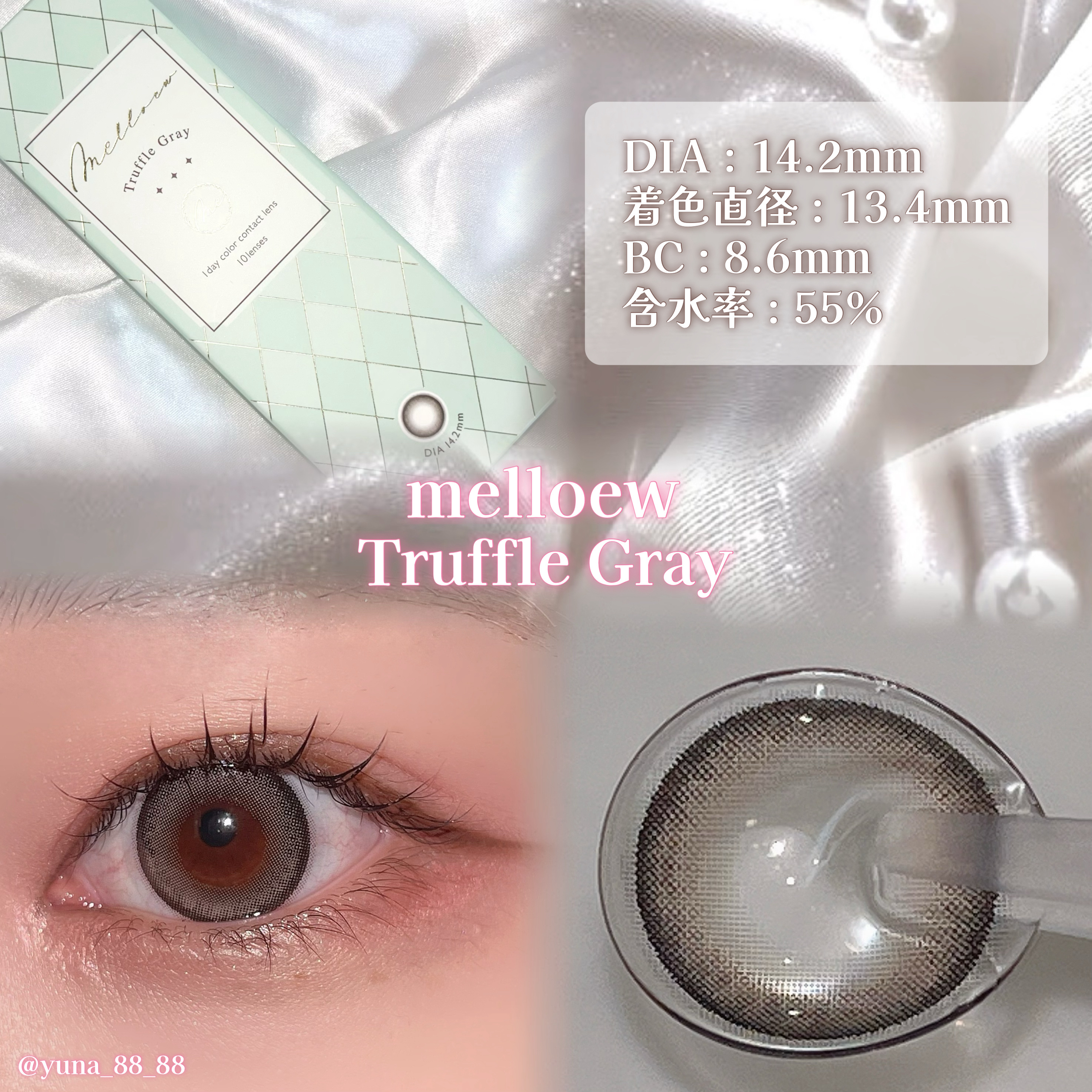 - ※2025年6月以降、商品パッケージ裏面・側面の一部表記を順次変更いたします。尚、これにかかる商品の交換・返品は承っておりません。 ふわっと漂う多幸感 キラキラとした瞳 そんな多くの人が憧れる印象はmelloewで作れる! 王道盛れからあざと盛れまでどんな盛れも叶うラインナップで瞳をコーディネート☆ Cotton Ring(コットンリング) DIA14.2㎜/着色直径13.5㎜ 溶け込みベージュ×くっきりフチ 写真でもリアルでも盛れちゃう♪ Silky Pearl(シルキーパール) DIA14.2㎜/着色直径13.5㎜ ツヤっぽベージュ×細フチ 垢抜けた印象にしたい方におすすめ♪ Truffle Gray(トリュフグレー) DIA14.2㎜/着色直径13.4㎜ おしゃれモテ♡ 濃いめグレージュ×ぼかし細フチ 品よく盛れるお嬢様な瞳に Pure Nude(ピュアヌード) DIA14.2㎜/着色直径13.2㎜ 絶妙ヌーディカラー×グラデフチ お仕事やカラコン初心者にもおすすめ♪ Brown Chou(ブラウンシュー) DIA14.2㎜/着色直径13.6㎜ まろやかブラウン×ぼかしフチ 日常使いにもおすすめ♪ Mocha Powder(モカパウダー) DIA14.2㎜/着色直径13.6㎜ リピ確モテ♡ ふわふわモカ×くりっとフチ 絶対盛れちゃう甘い瞳に Love Cacao(ラブカカオ) DIA14.2㎜/着色直径13.0㎜ 清楚モテ♡ とろふわチョコレート×こっそりフチ バレずに盛れちゃう瞳に カラーコンタクトレンズの不適正使用による眼障害の危険性等などがあります。 ●コンタクトレンズは高度管理医療機器です。不十分な洗浄・消毒など不適切なケアや、長時間・交換期間を超えた装用により、アレルギー性結膜炎、角膜感染症、角膜潰瘍等の重篤な眼障害が発生する危険性があります ●ご使用前に取扱説明書を確認してください 使用上の留意事項 ●眼科医院等を受診してからお求めください ●眼に異常を感じたら直ちにレンズ使用を中止し、お近くの眼科等で診察を受けてください ●医師の指示にしたがってご使用ください ●コンタクトレンズを装用する場合、自覚症状がなくても、眼科医院等での定期検査を受けてください ●レンズに不具合がある場合は使用しないでください