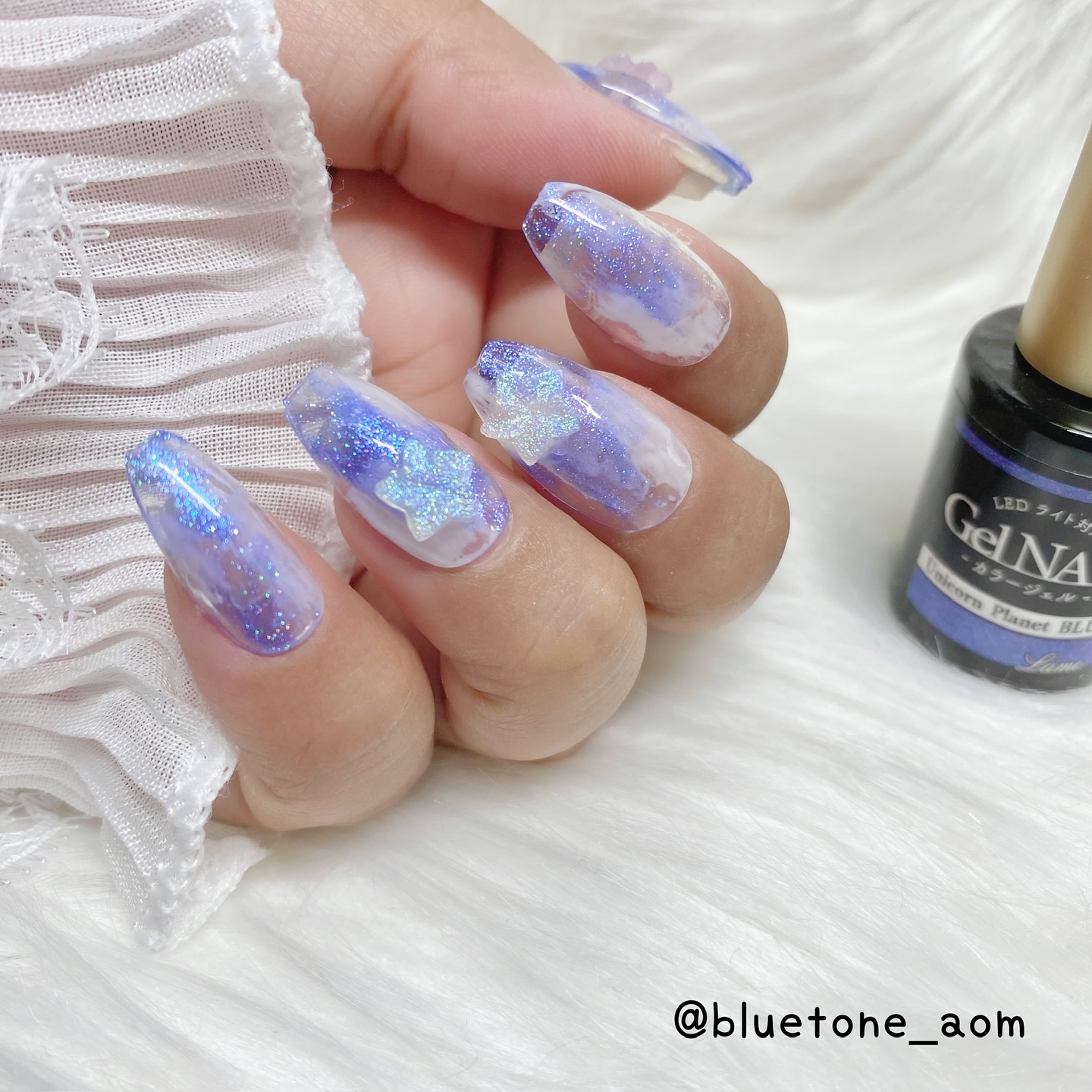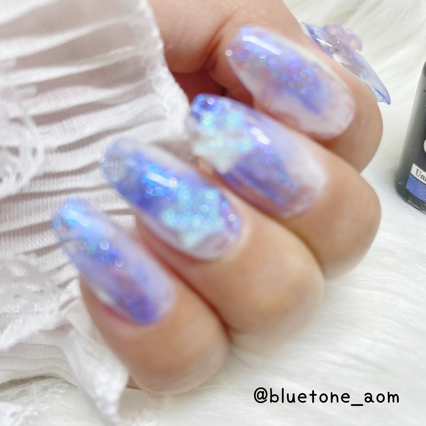 ラメがしっかりしてるし クリアカラーが入ってるから オーロラパウダー無しでも 充分キラキラしました! 反射強めのフィルムなので 実物はもっと うるうるとキラキラが強いです! ビー玉みたい🥺 ネイルシール長持ちさせたいけど ちょっと飽きてきたな〜って時とかに 全然違った印象になるのでオススメです! Seriaのベースジェル 本当にうるうるネイルしやすいので オススメしたい🙆♀️