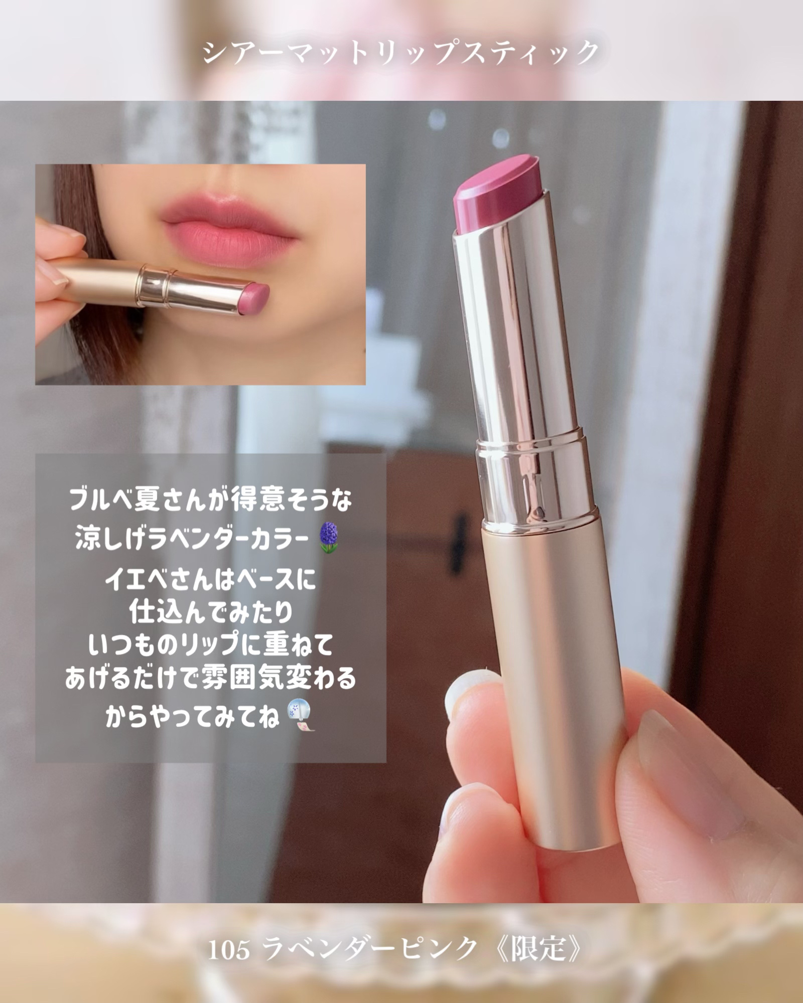 \透けふわピンクが可愛すぎた…🥹/オペラシアーマットリップスティックから、夏の限定色が発売!▶︎105ラベンダーピンク(限定色)どこか儚いラベンダーのニュアンスを一滴加えた血色ピンクに、シフォンケーキのような“ふわり質感”を掛け合わせたラベン...