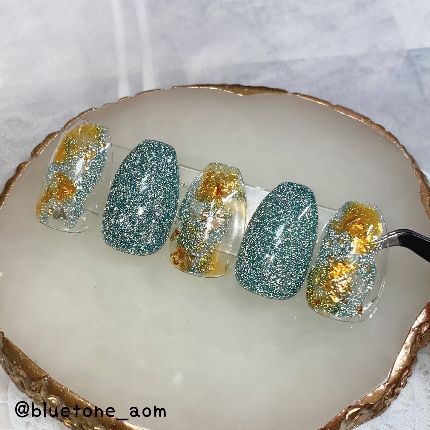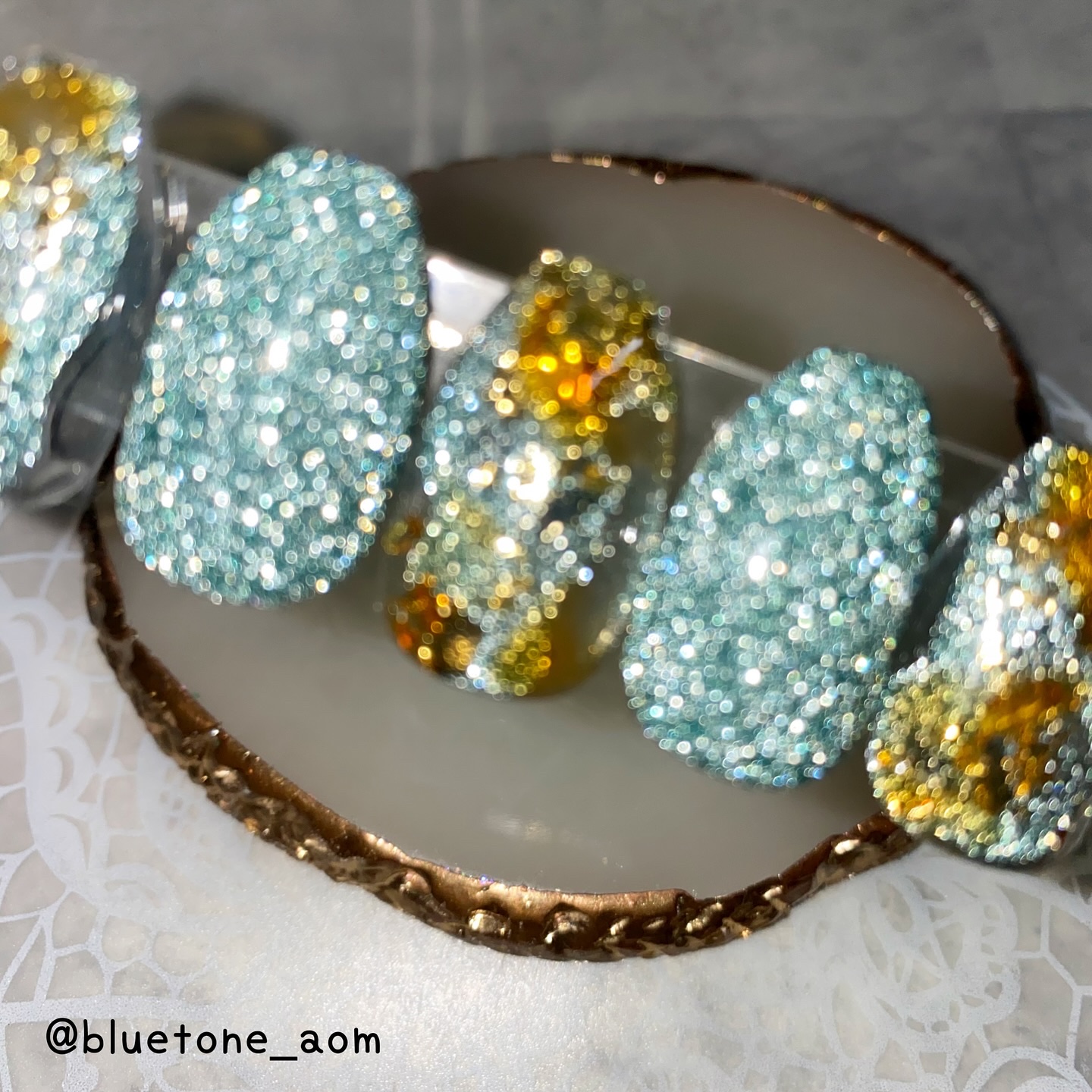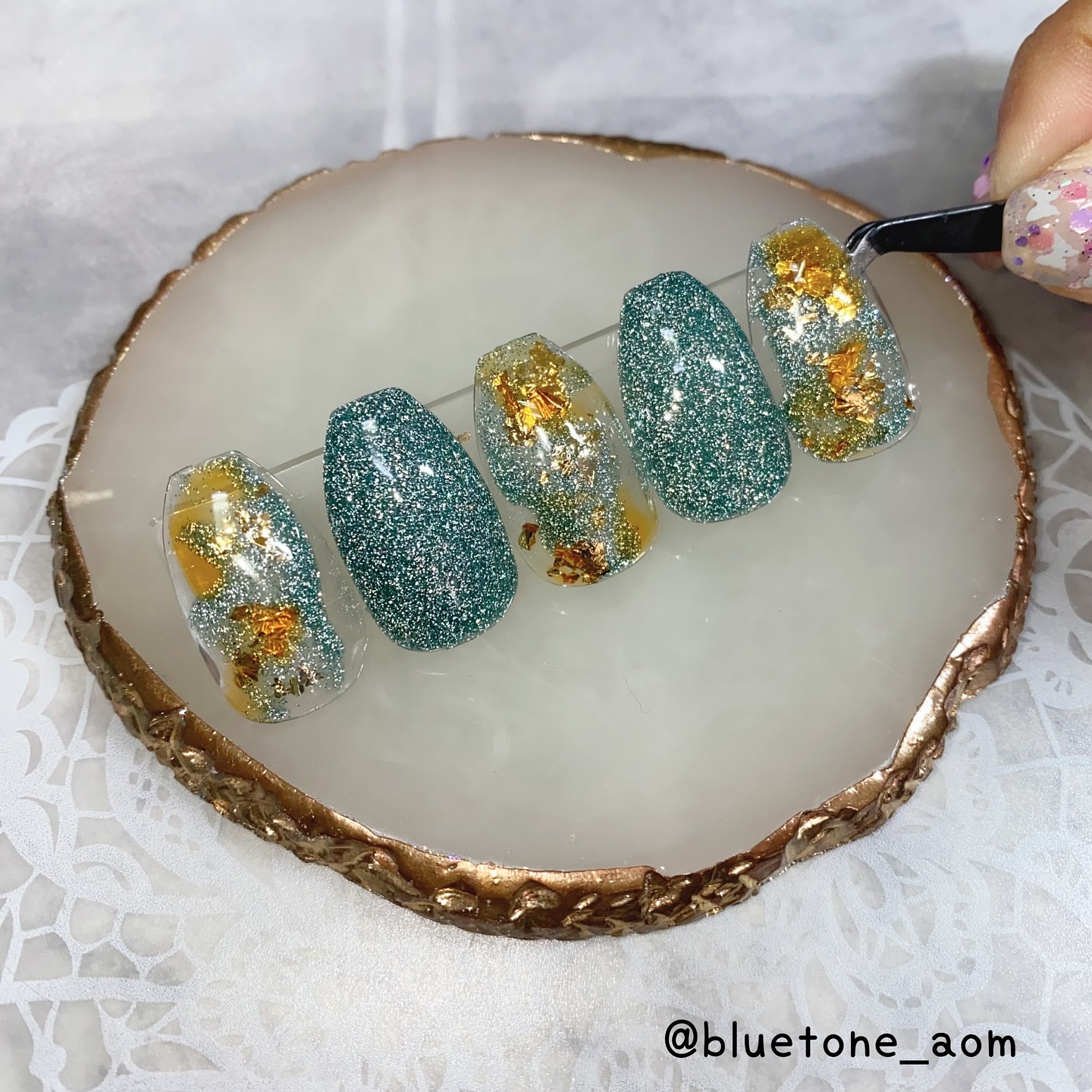 ラメがしっかりしてるし クリアカラーが入ってるから オーロラパウダー無しでも 充分キラキラしました! 反射強めのフィルムなので 実物はもっと うるうるとキラキラが強いです! ビー玉みたい🥺 ネイルシール長持ちさせたいけど ちょっと飽きてきたな〜って時とかに 全然違った印象になるのでオススメです! Seriaのベースジェル 本当にうるうるネイルしやすいので オススメしたい🙆♀️