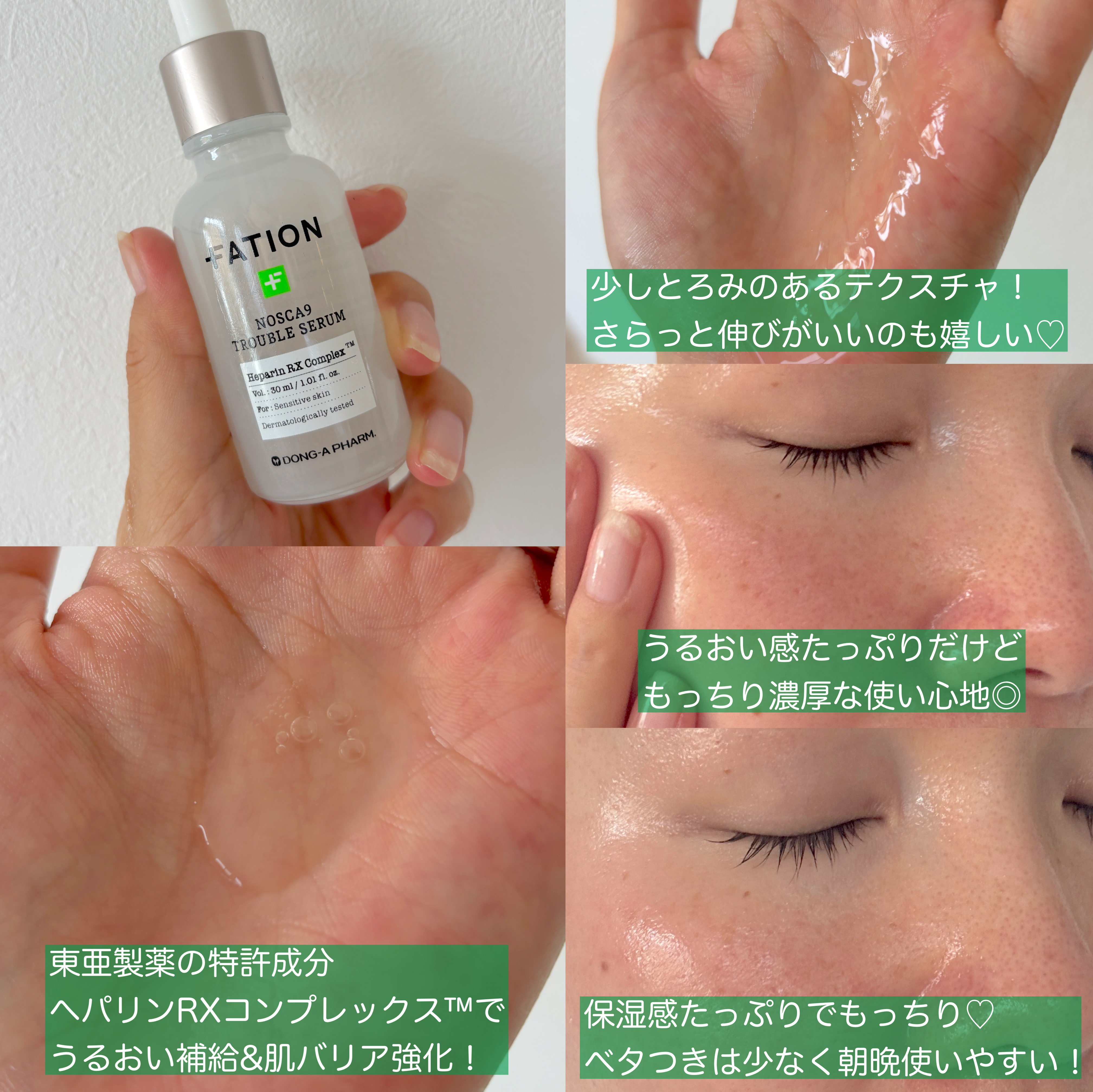 ニキビ、トラブルで敏感になった肌に もっちり使用感のセラムをご紹介🩵 韓国TOPの製薬会社『東亜製薬』が9年間研究開発したノスカナイントラブルセラム✨ 特許を受けた有効成分伝達技術、【ラピッドサムテクノロジー™】を含むノスカナインのトラブルセラム