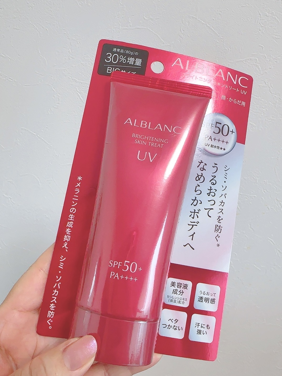 ALBLANC/アルブランブライトニングスキントリートUV日やけ止め(顔・からだ用)SPF50+/PA++++104g〈医薬部外品〉シミ・ソバカスを防ぐ*うるおって なめらかボディへ♡*メラニンの生成を抑え、シミ・ソバカスを防ぐ。最近まで使っ...