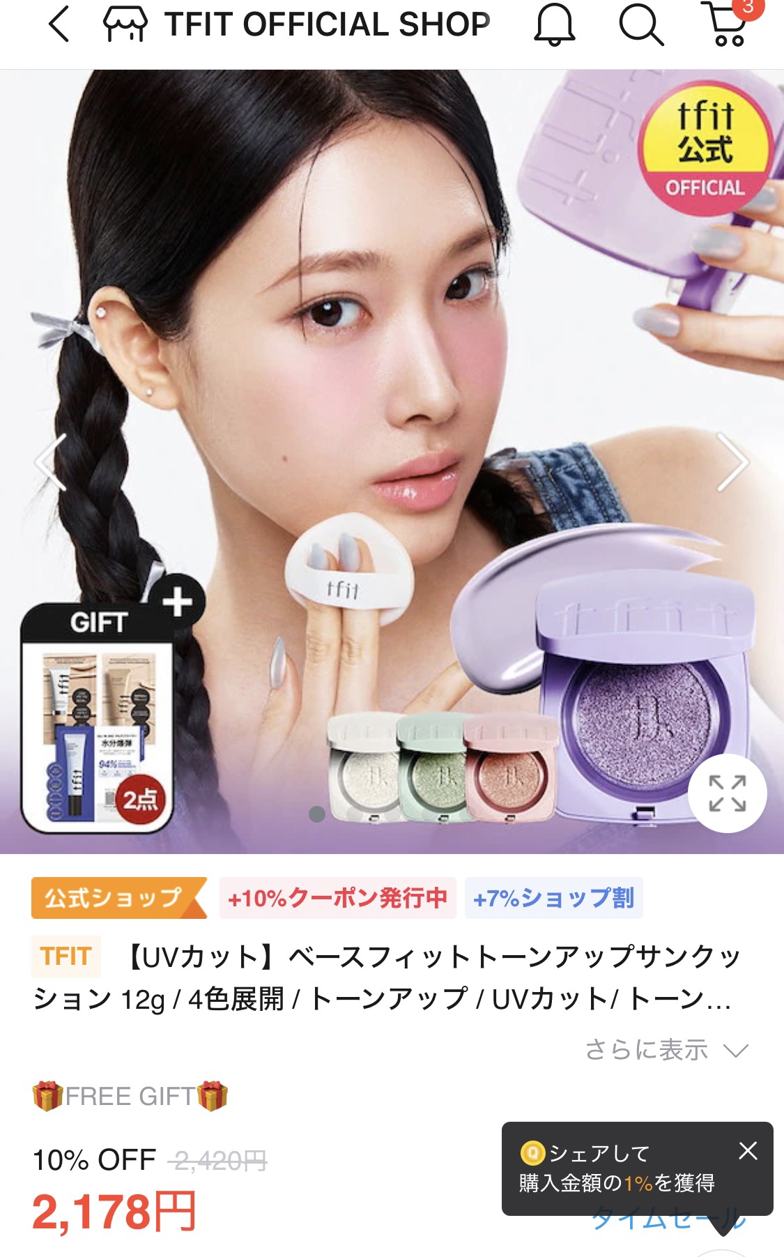 商品詳細情報TFIT ベースフィットトーンアップサンクッション