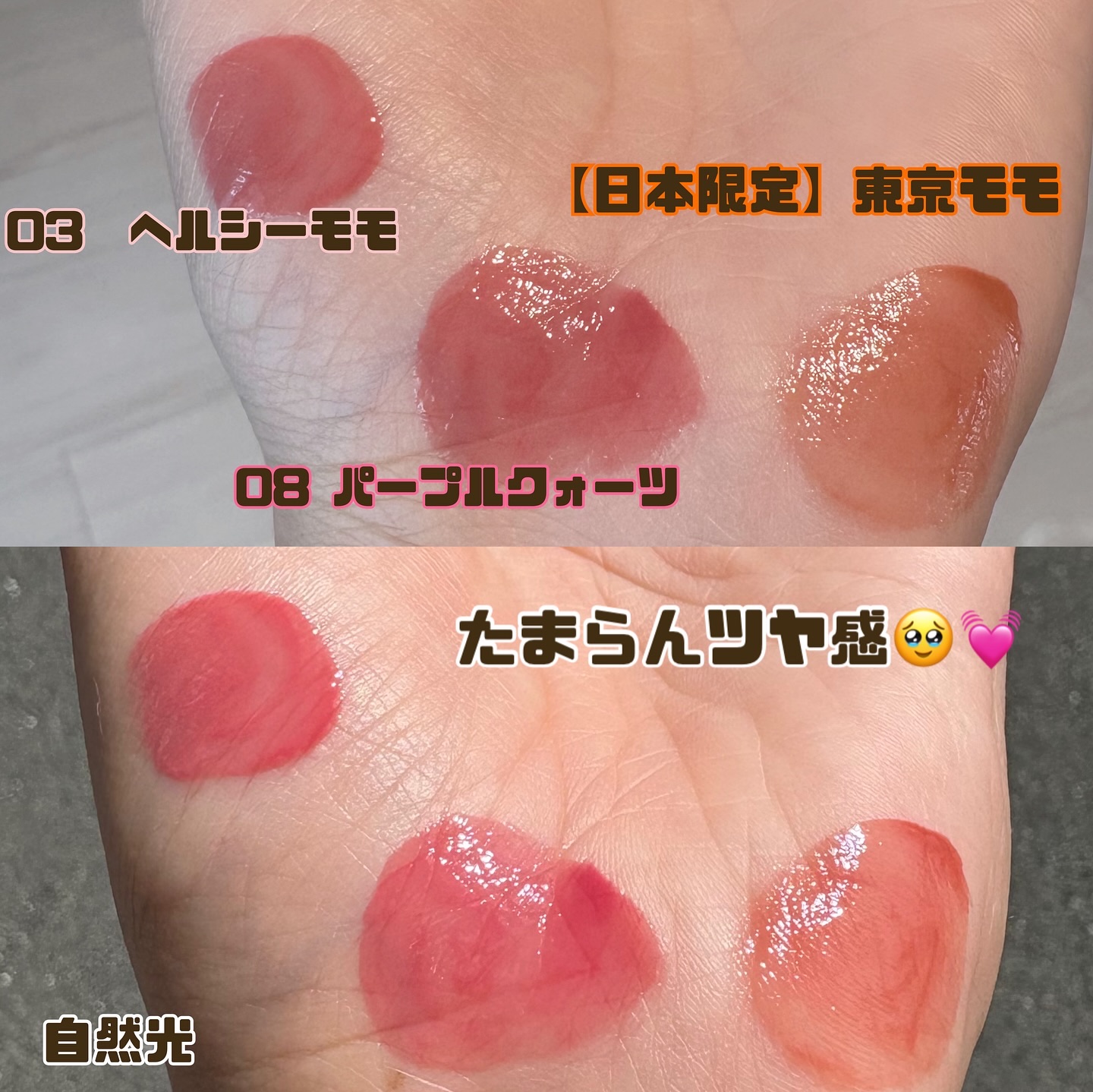 "飲み会リップ"で話題の【AMUSE】デューティント💄ぷるんとツヤ感が続いて、色残りも◎!✔️03ヘルシーモモ:肌なじみコーラル🍑✔️東京モモ:血色ピーチベージュ(日本限定)✔️08パープルクオーツ:青み系透けピンクそんな落ちにくいティントも...