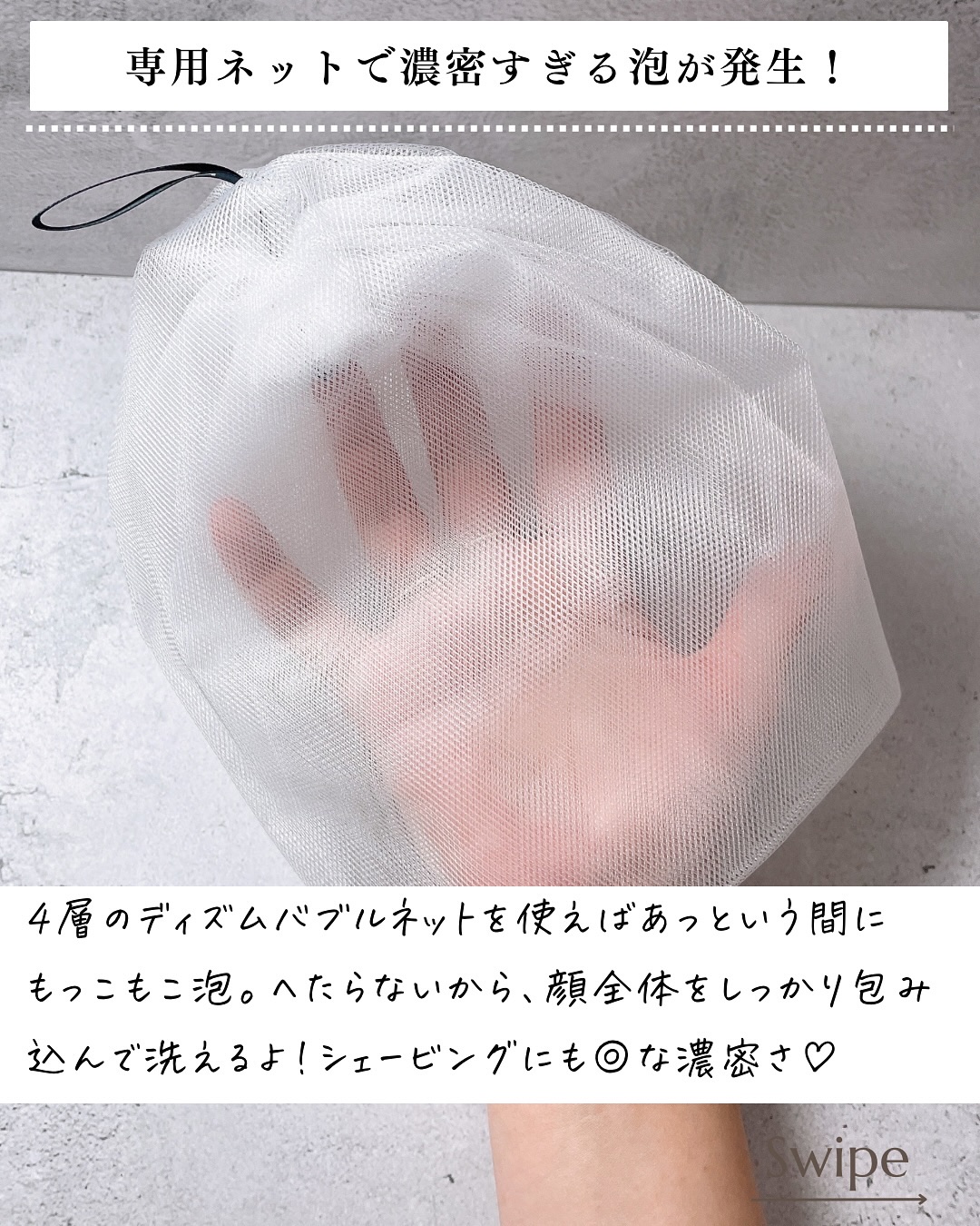 | 泡立てるとホイップのようにふわふわでモチモチ濃密泡🥰 | 詳細を見る | ||