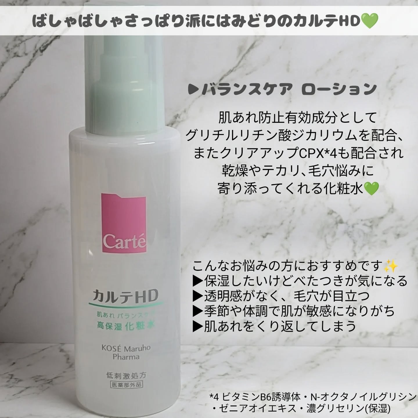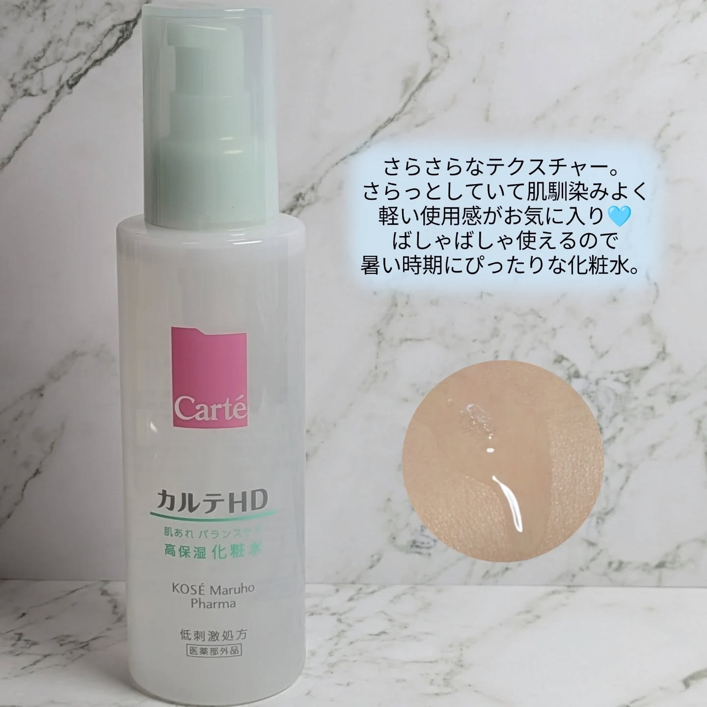 カルテHDさまからいただきました。モイスチュアローション 150ml乾燥やカサつきの気になる方におすすめだそう。とろみのあるテクスチャー。同じカルテHDのバランスケアローションよりとろみが強く、肌もよりしっとりしたように感じました。肌なじみが...