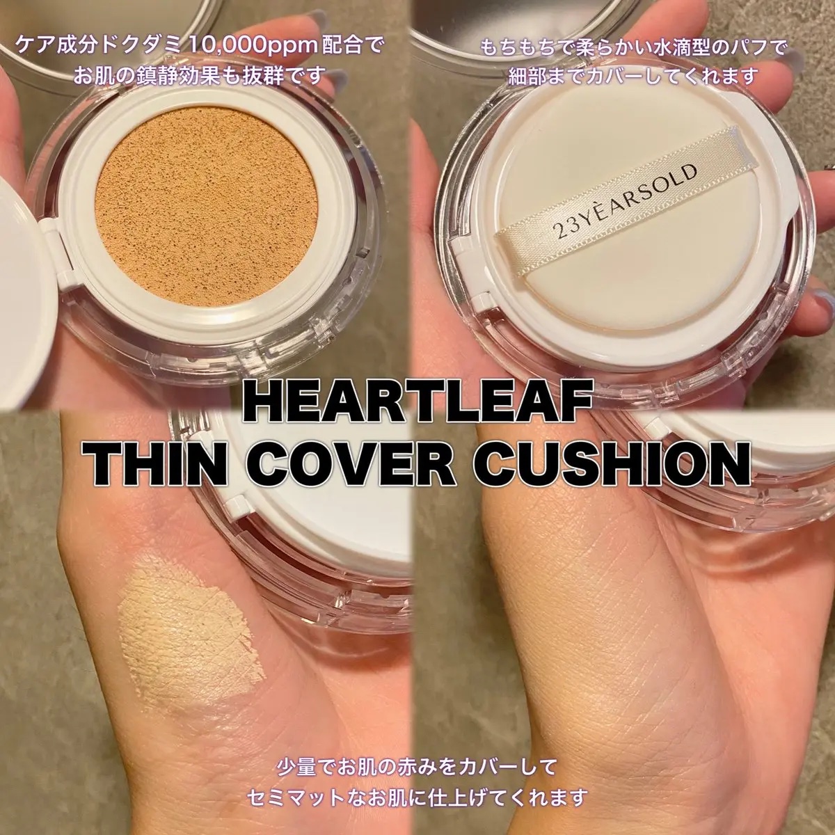 HEARTLEAFTHINCOVERCUSHION#21カバー力神のクッションファンデ🤍トラブル肌のケア+カバーを同時に!スウェットプルーフ処方→8時間崩れにくい、快適な仕上がりエッセンス含量65%,ドクダミ10,000ppm含有でしっとりし...