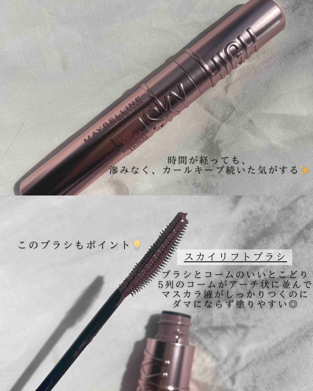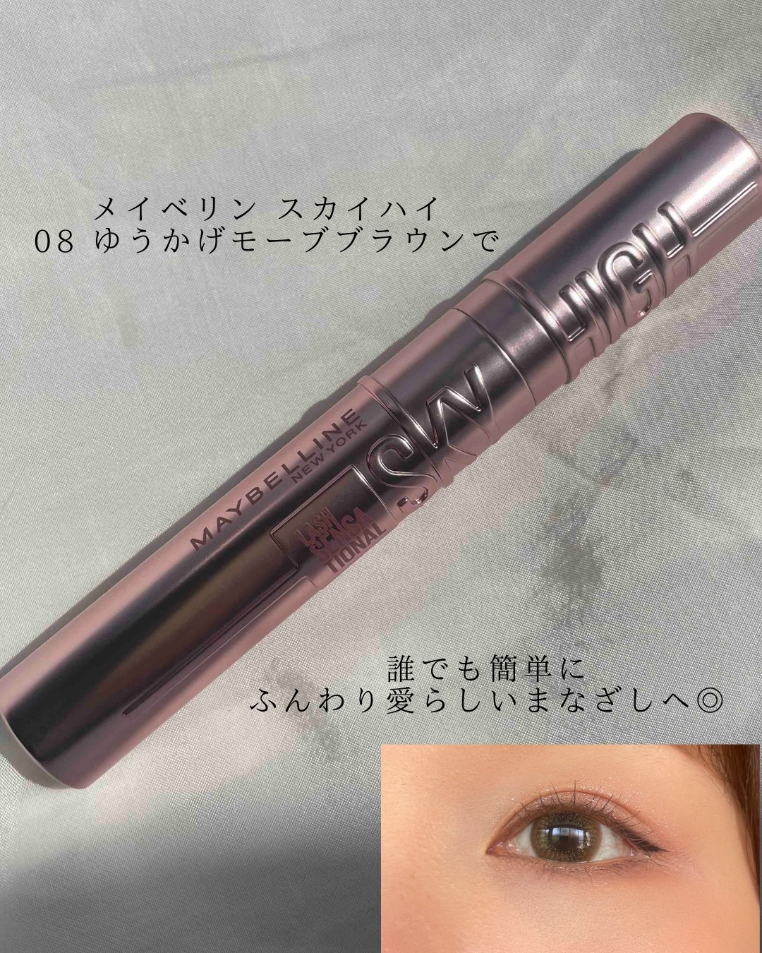 メイベリンニューヨーク🗽MAYBELLINENEWYORK☑︎スカイハイマスカラ✨🌌01ブラック02たそがれブラウン08ゆうかげモーブブラウン¥1,694根元からグイッと上げてキレイに伸ばすスカイリフトブラシ×カールキープ処方で上向きまつ毛が...