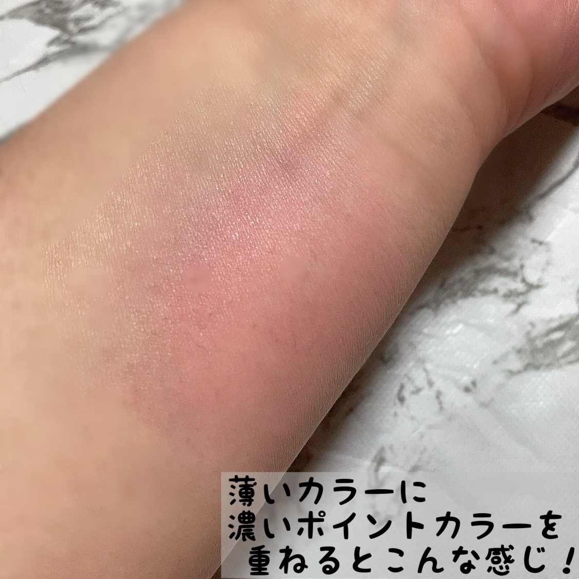見た目は結構、茶色ぽく見えるけど ベージュ寄りだしピンクみがあるから 暗くなりすぎないです✨ 右側のピンクを混ぜると ピンクベージュのようなカラーになって 可愛いし使いやすい♡ 発色も柔らかいので好みの濃さに出来るし 濃く付きすぎないから 暗めカラー使い慣れてなくても 挑戦しやすいと思います! しっとりしたパウダーで肌の上で磨くと 上品なツヤも出てくれて感動👍🏻 自分の好きな色味に調整出来るし 何よりこのチークは驚く程薄いケースで 持ち歩くのにとても便利です😌