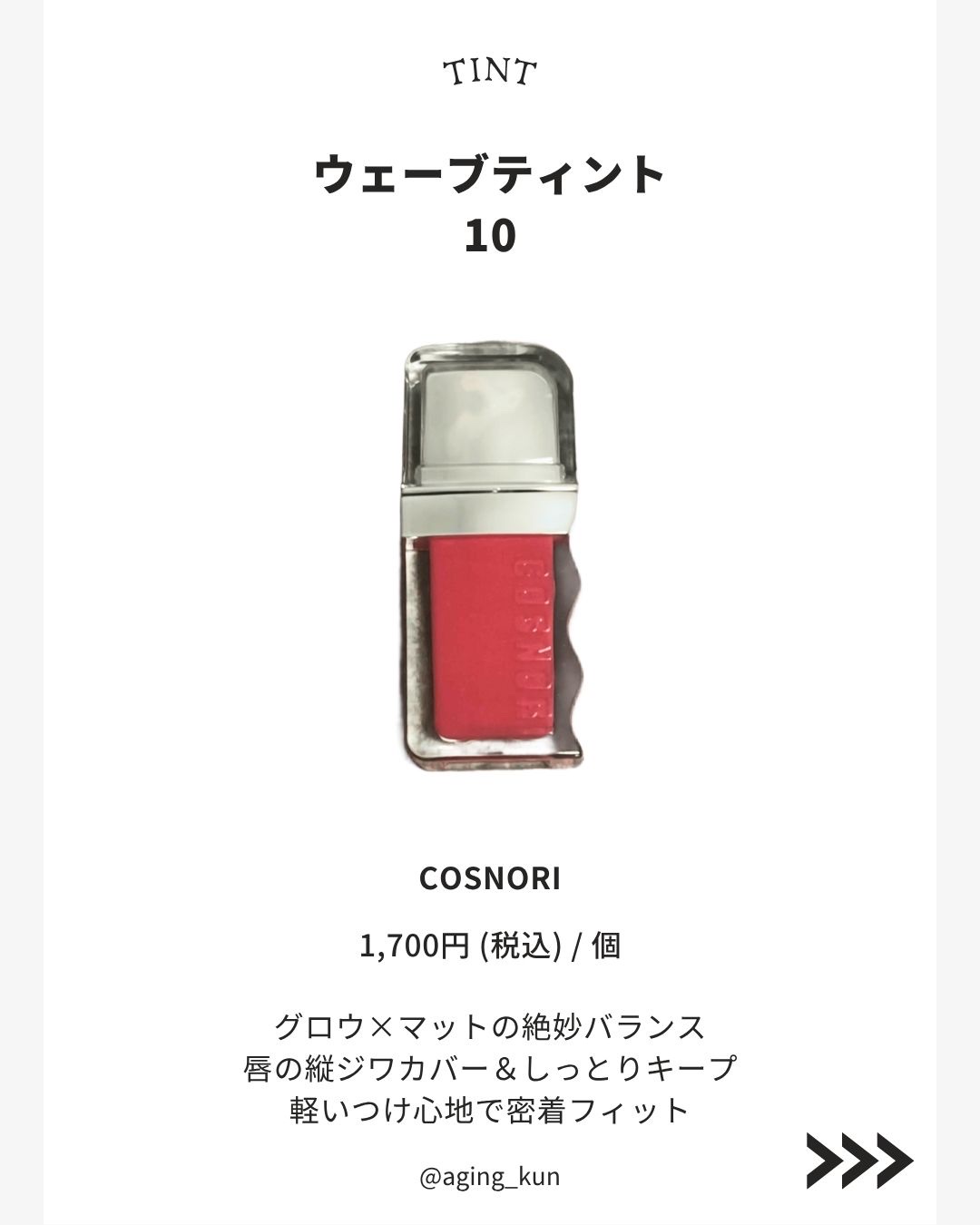 | 発色がよく、プルプルつやつやな感じ✌️ 色持ちもかなり良かったので飲み会リップとかにも良さそうです◎ | 詳細を見る |