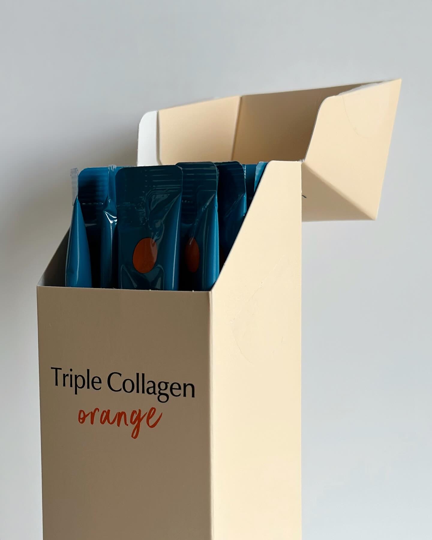 理想の私へ導くトリプルコラーゲン、爽やかなオーガニックオレンジジュース味で美味しく真皮成分、フィッシュコラーゲン・エラスチン・ヒアルロン酸の3つをチャージすることができます。 水なしでそのままチュッと飲めます🍊✨ 炭酸水で割っても良いし、ヨーグルトやサラダにかけても、凍らせても…アレンジも様々。 おやつ感覚で1日1包、美容サポート習慣として取り入れてみませんか?
