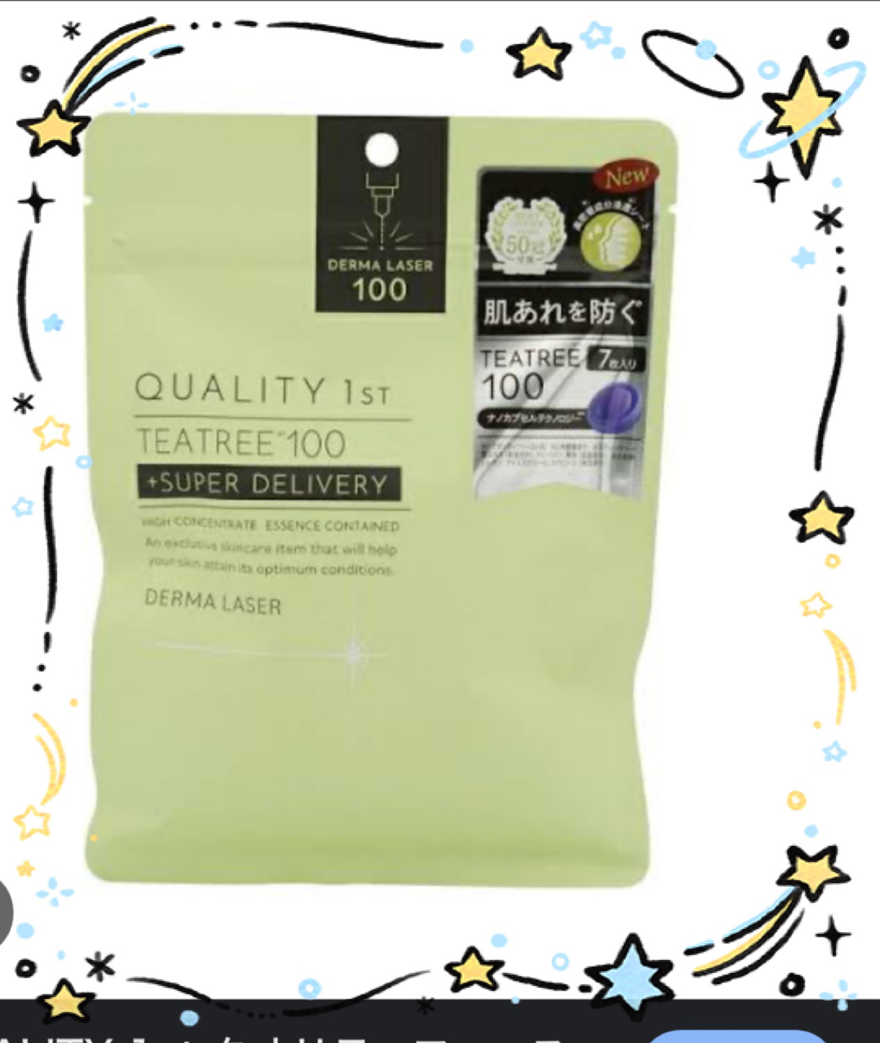 クオリティファーストダーマレーザースーパーTEATREE100マスク¥7707枚入り・濃厚・高純度ティーツリー配合・ナノカプセルテクノロジー採用・シリコンマスク発想の高密着、高浸透Premiumシート液もヒタヒタでシートもガーゼぽくて肌に密着...