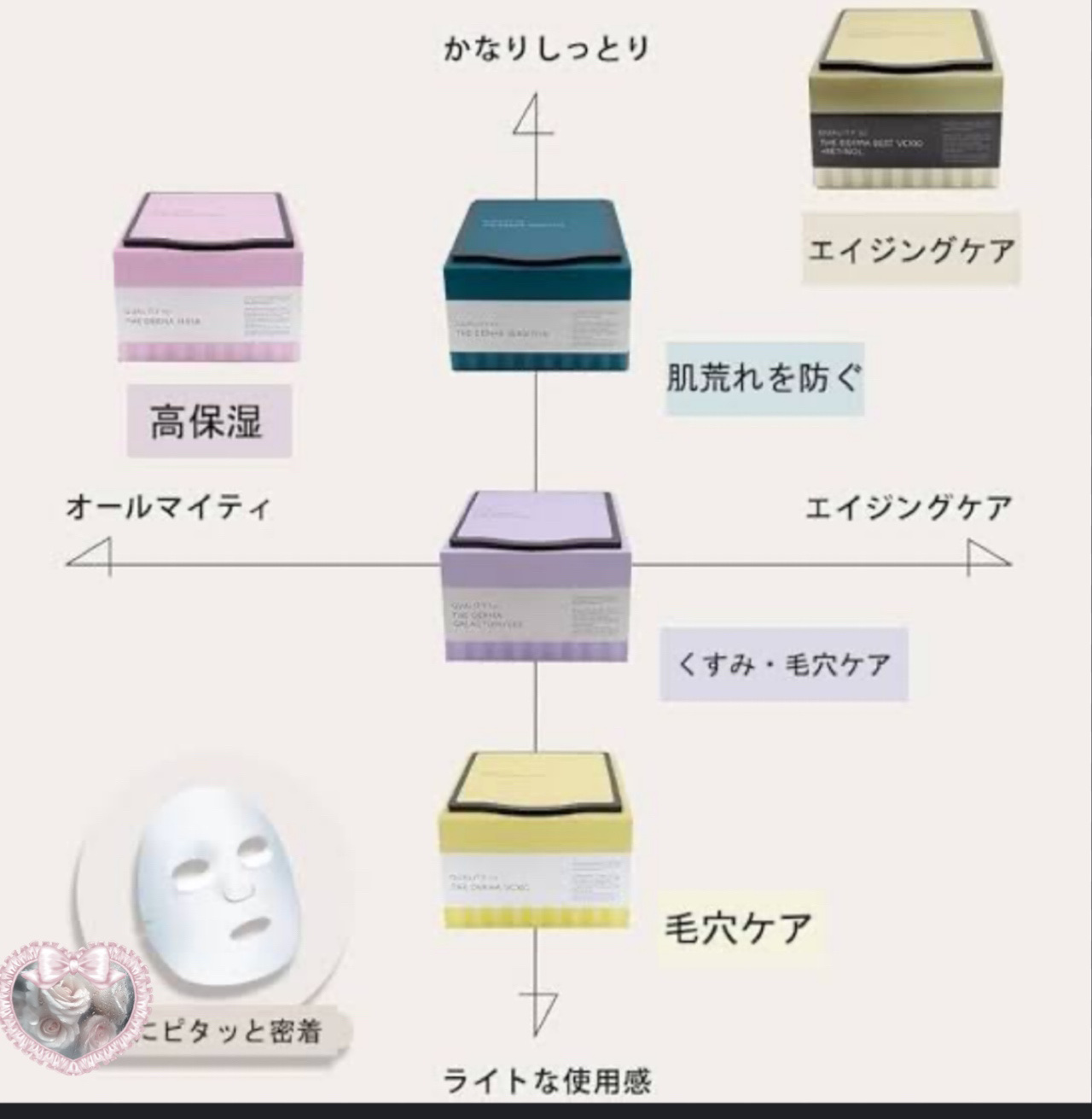 ガラクトポアセラムはテクスチャーはしっとりしてて 乳液のようなテクスチャーで浸透が早く乾きやすいから夏におすすめ ツボクサエキスが入ってるのでニキビ肌に悩んでる方は肌に優しいので使いやすいです PHセンシティブマスクスージング&モイストは10枚がひと袋ずつ入っていて 衛生面を考慮したらすごくいいし旅行などに持っていきやすくて便利です