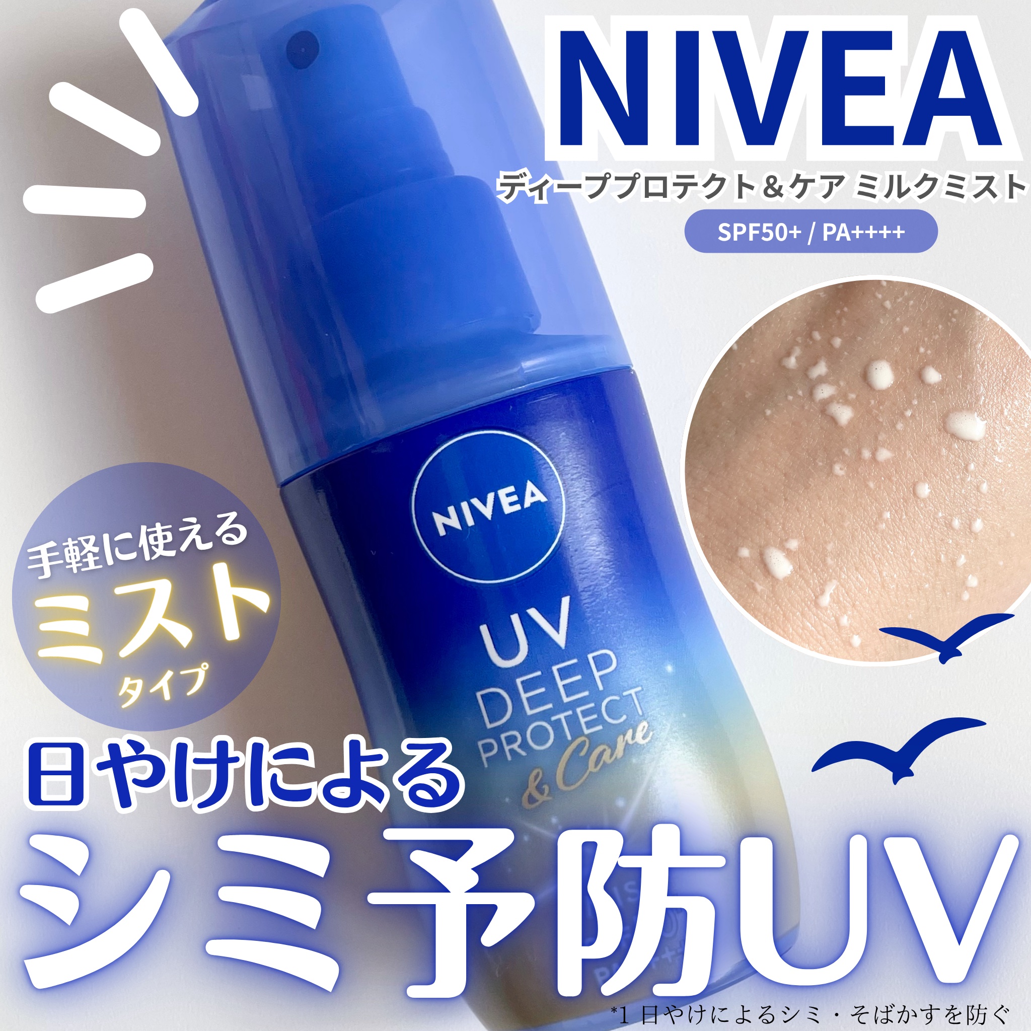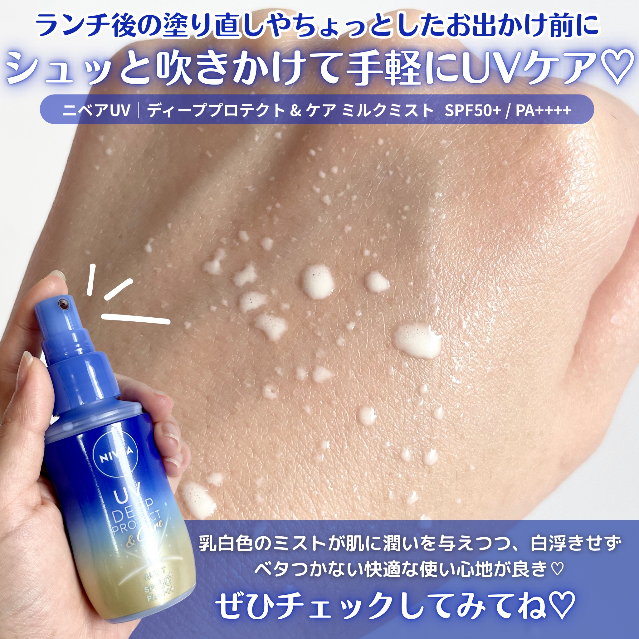 ✴︎ニベアUVディーププロテクト&ケアミルクミストSPF50+PA++++日中の塗り直しに便利なミルクミスト!乳白色のミストはべたつかず、白のこりしないからとっても使いやすい◎面倒な塗り直しがシュッと簡単にできて嬉しいです☀️#PR#ニベア#...