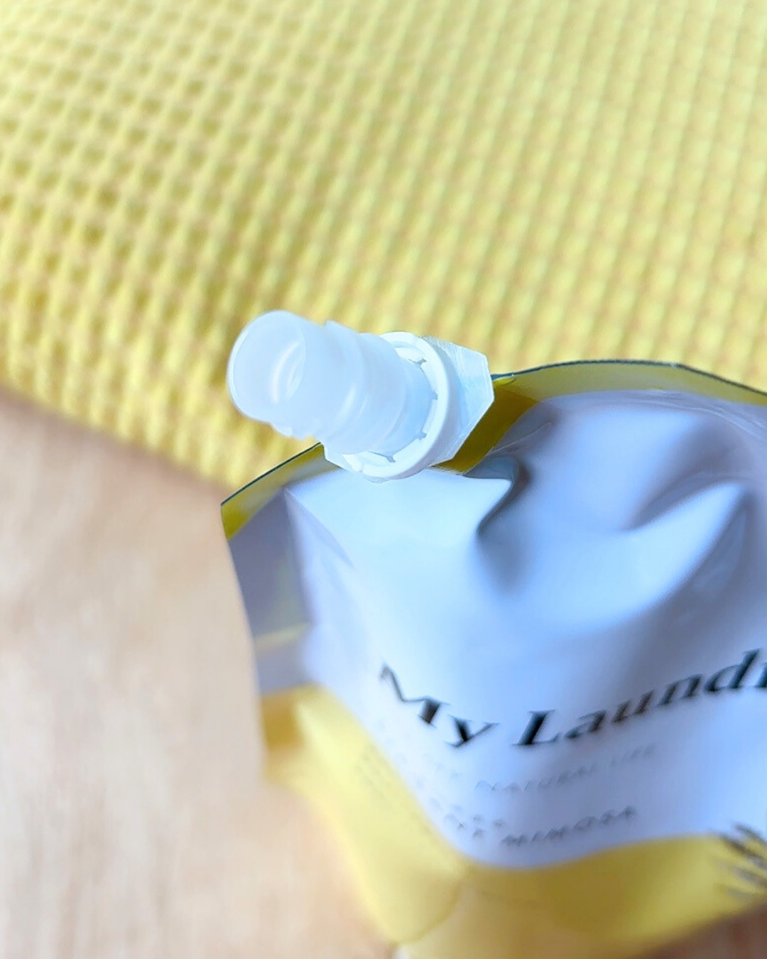 マイランドリー▶︎エレガントミモザの香り\大容量!赤ちゃんも使える優しい柔軟剤/☑︎家族で使える☑︎天然植物由来成分☑︎静電気軽減☑︎部屋干しにも☑︎衣類からスキンケア☑︎防臭、抗菌作用☑︎ふんわりエレガンドな優しい香り--使用感✍️--フタ...