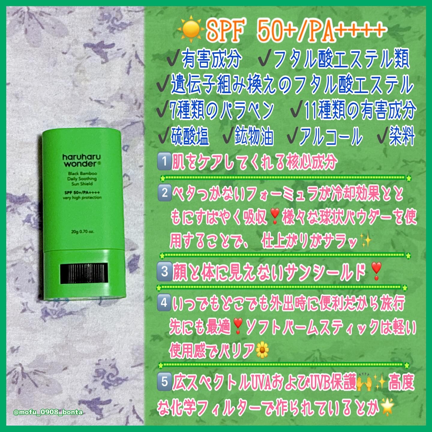 haruharu wonder ブラックバンブーデイリー スージングサンシールド 20g SPF 50+/PA++++ |