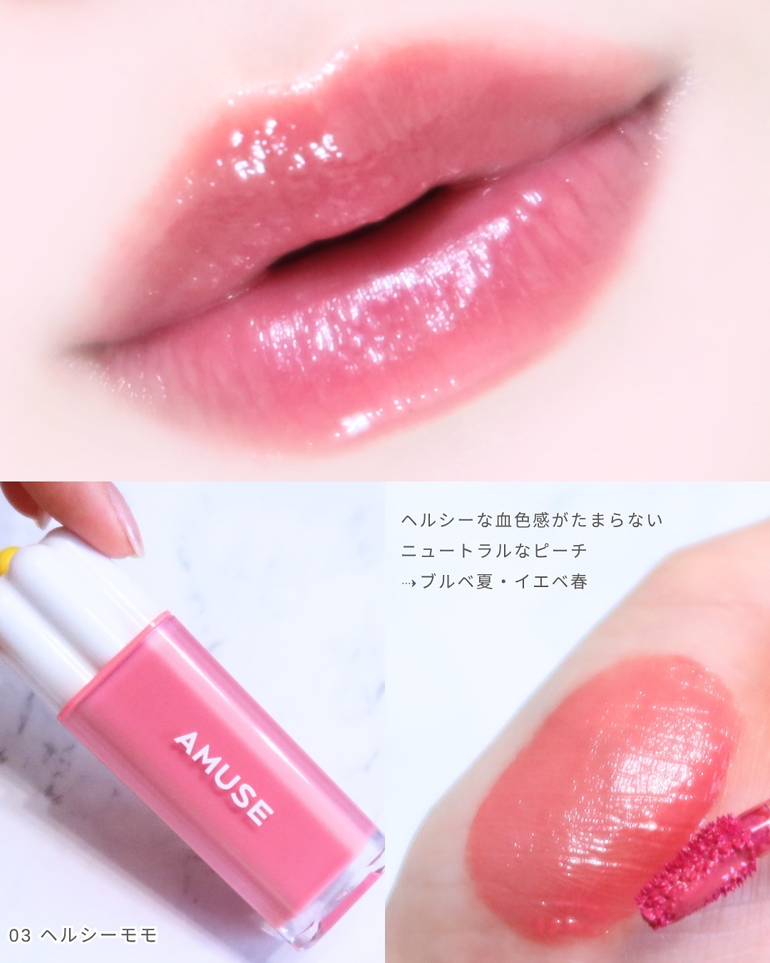 唇にしっかり定着してくれて、ほんと落ちにくい!!😳👏 食事をしても唇に血色感が残るので デートにもおすすめ🥰 しかも全色絶妙にかわいいカラー、、🤤❤️🔥 ブルベ夏のわたしは特に03,04がお気に入り!