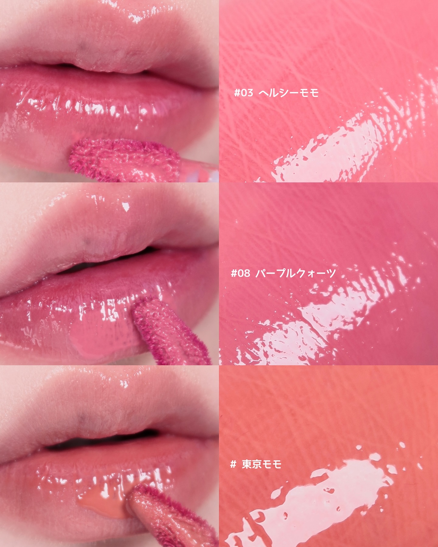 ガラス玉のような透明感ティント🫧 果実茶ティントリップ N01 白桃練乳茶 C02 夕焼け柚子茶 N06 ライチソーダ茶 B07 ピンク葡萄柚茶〈グレープフルーツ〉 元々N06番は一軍リップとして愛用中🫰🏻 ガラス玉のような透明感のあるティントで、どのカラーも可愛い🥺💓 ジュディドールは本間にハズレがなくてオススメ! マジで中国コスメの中で一番好きなブランド🫶🏻