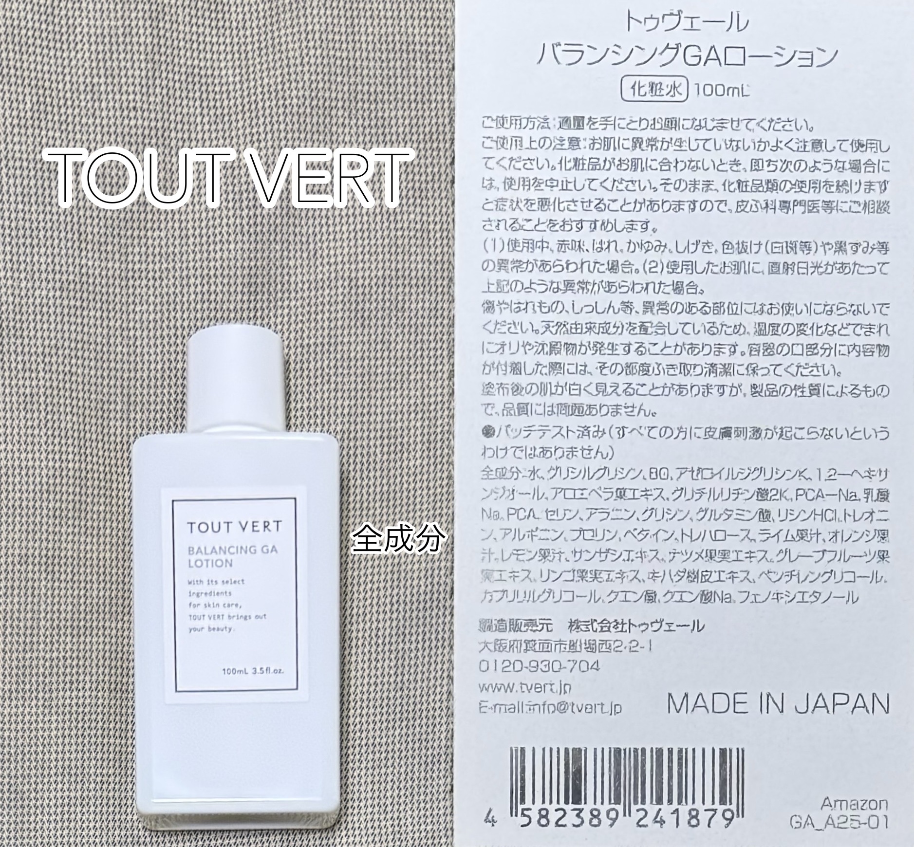 TOUTVERTバランシングGAローション ¥1,980(ホームページで8月上旬時点では2000円税込表記されてました。)シャバシャバした質感でさっぱりとした使用感ながらも潤います✨香りも癖がなく使いやすいです🙆♀️乾燥肌より脂性肌向けのス...