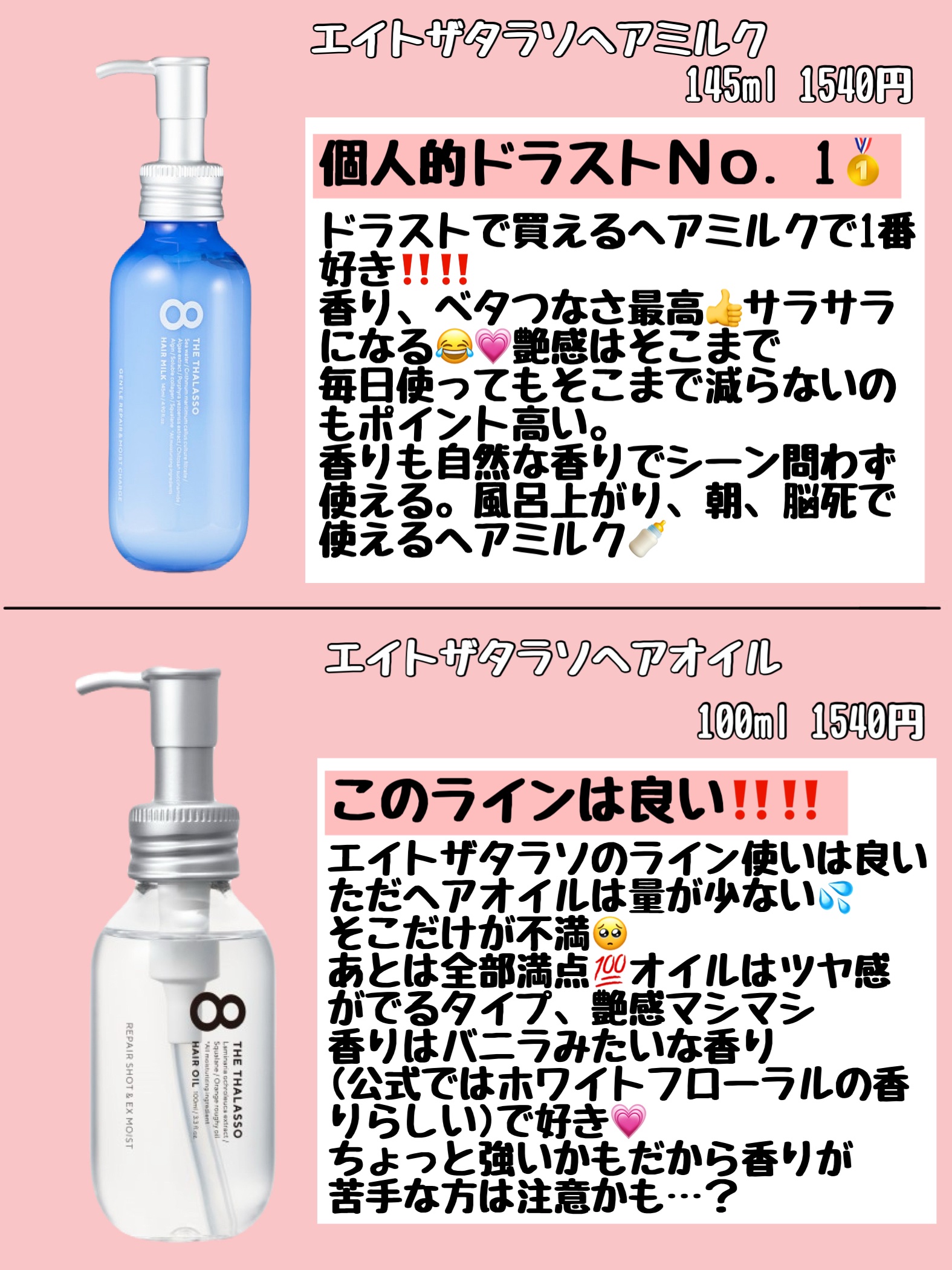 おすすめアイテムエイトザタラソ×ヘアミルク