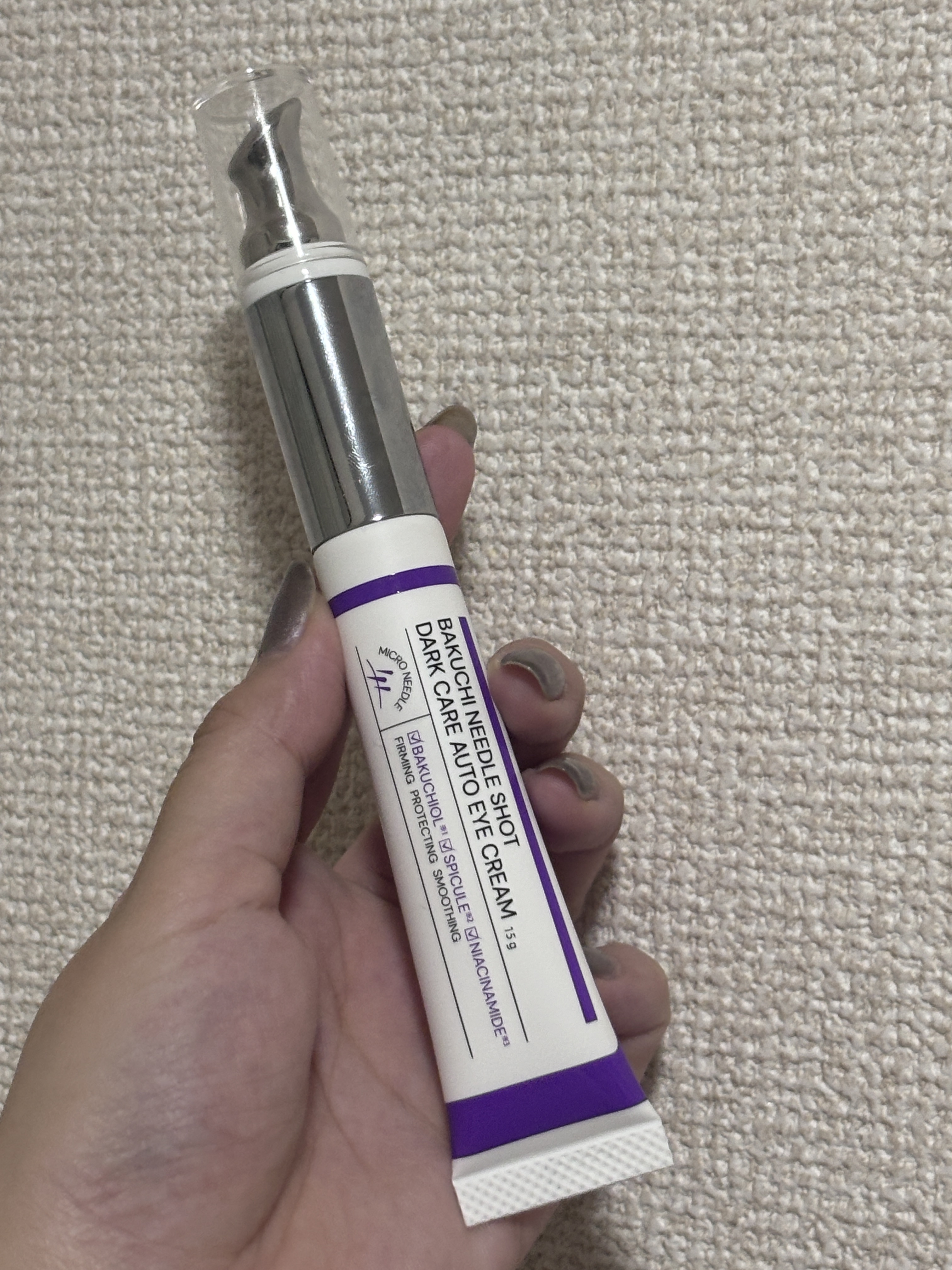 LIALUSTERBAKUCHINEEDLESHOTDARKCAREAUTOEYECREAM微細な美容針であるスピキュールを配合した集中目元ケアクリームなめらかなテクスチャーのクリームで、目元になじませやすいです。シルバー部分が振動機になって...