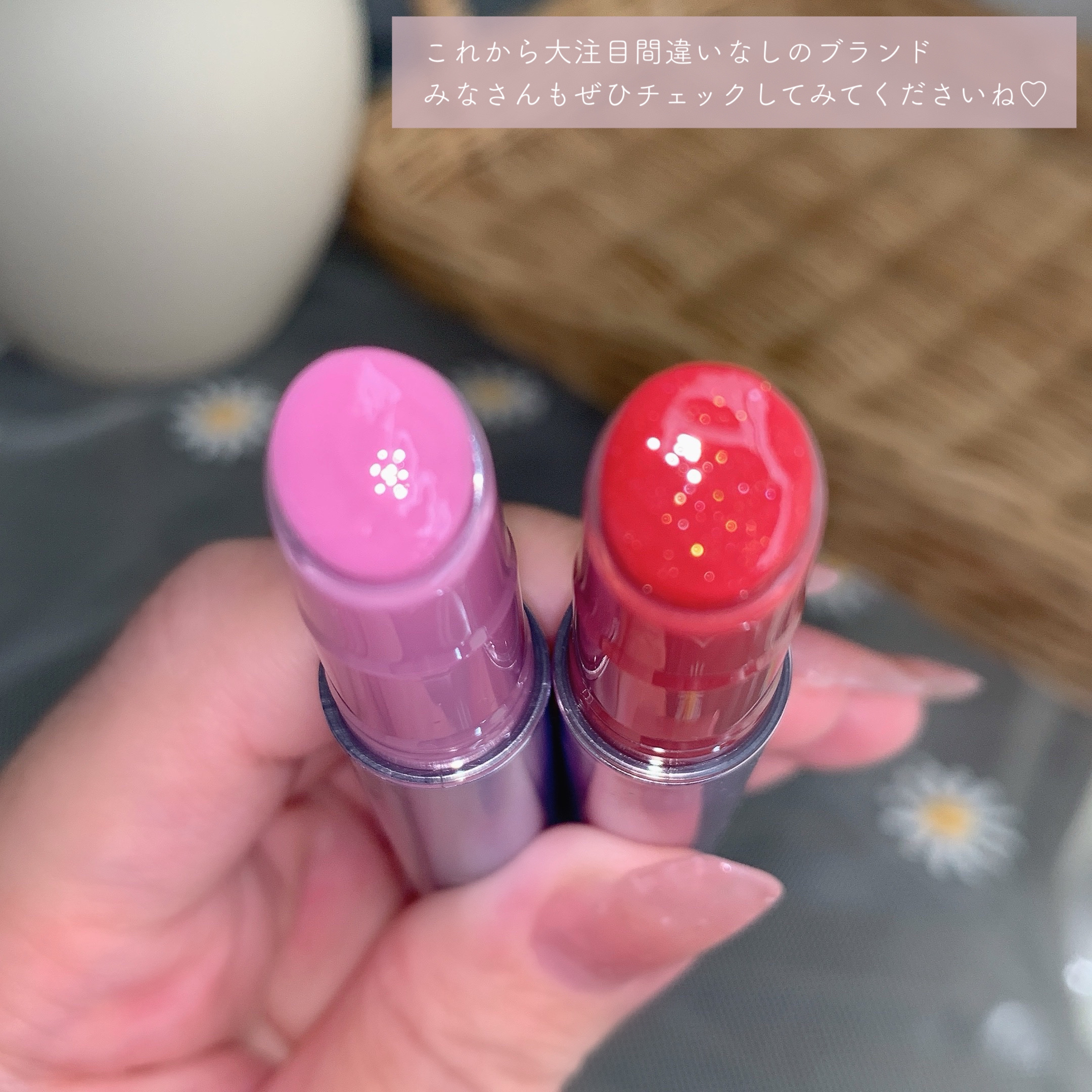 色味のかわいさだけでなく色持ちもよくて、なによりグロスいらずなちゅるんちゅるんのツヤ感がお気に入り! 磨りガラスのパッケージもお洒落♡ リアルでも友達や家族におすすめしまくるくらいお気に入りで、私の人生リップと言っても過言ではないアイテムなので是非試してみてくださいね〜!!