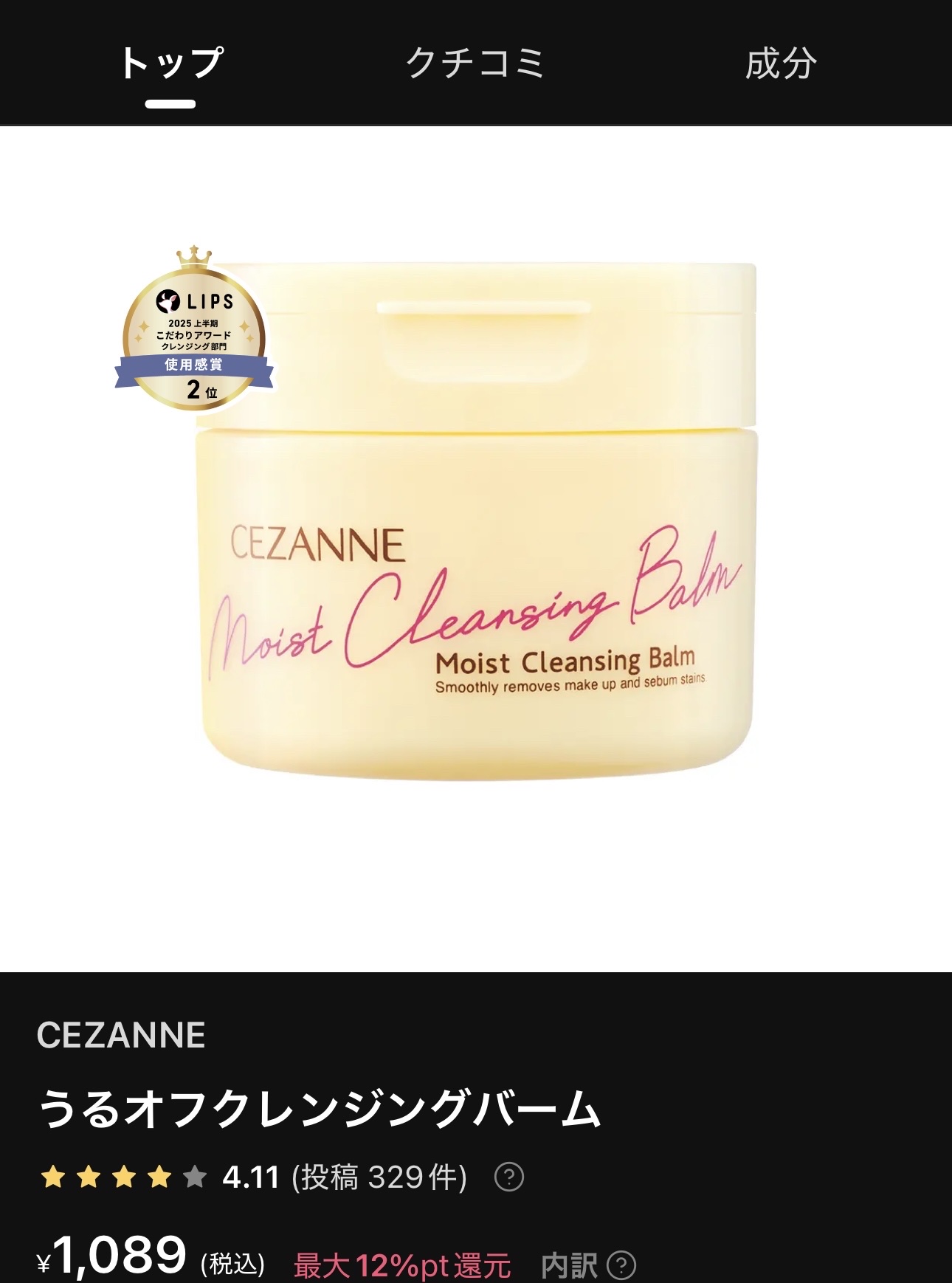 - LIPSベストコスメ2025 クレンジングバーム部門3位LIPSベストコスメ2025 上半期こだわりアワード クレンジング部門使用感賞2位LIPSベストコスメ2024 下半期新作賞 クレンジングバーム部門1位LIPSベストコスメ2024 下半期こだわりアワード クレンジング部門メイク落ち良い賞3位LIPS月間トレンド賞2024年10月 スキンケア部門1位